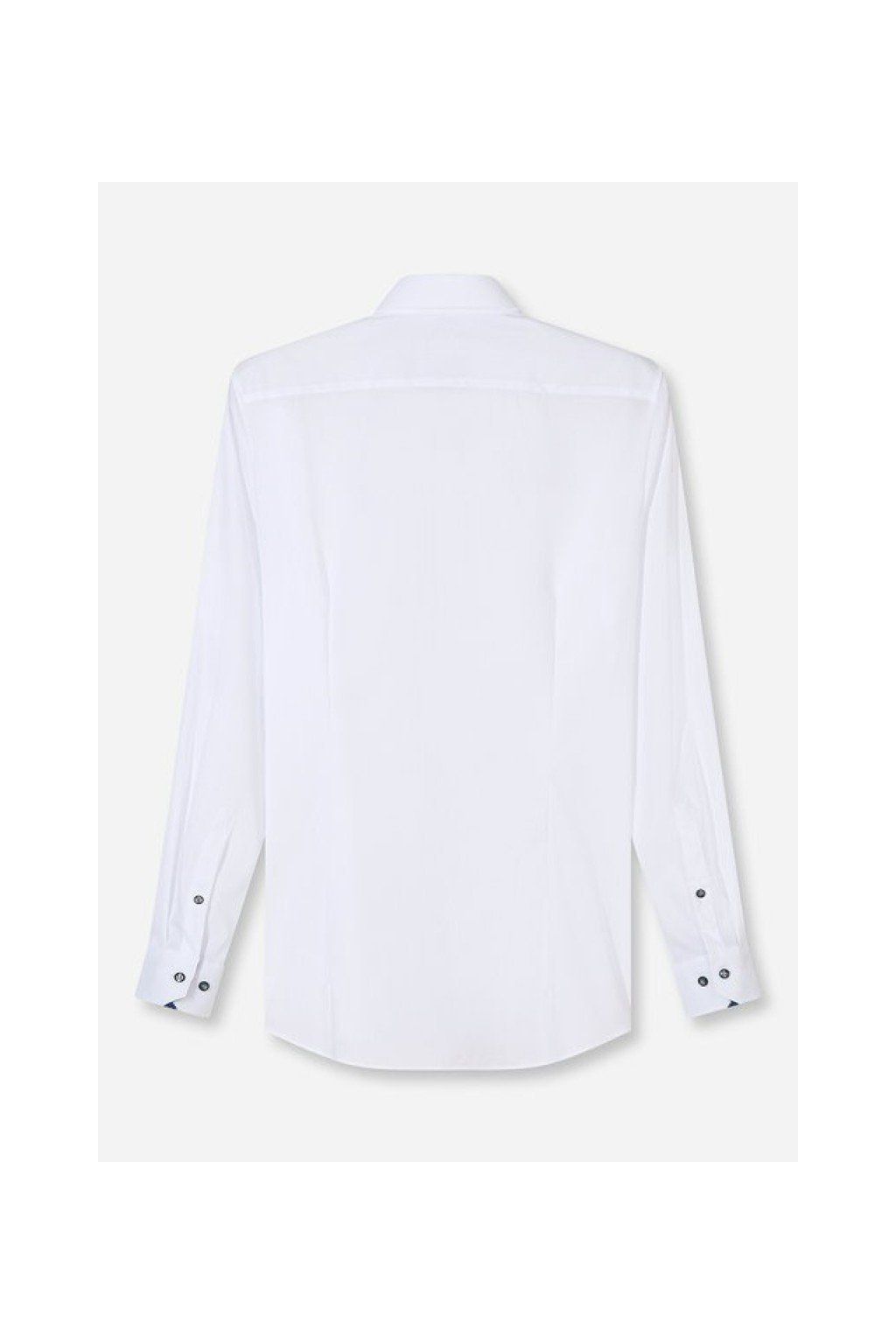 Na první pohled působí čistě a elegantně, ale kontrastní detaily v límečku a manžetách spolu s tmavými knoflíky dodávají košili osobitý charakter a moderní šmrnc.
