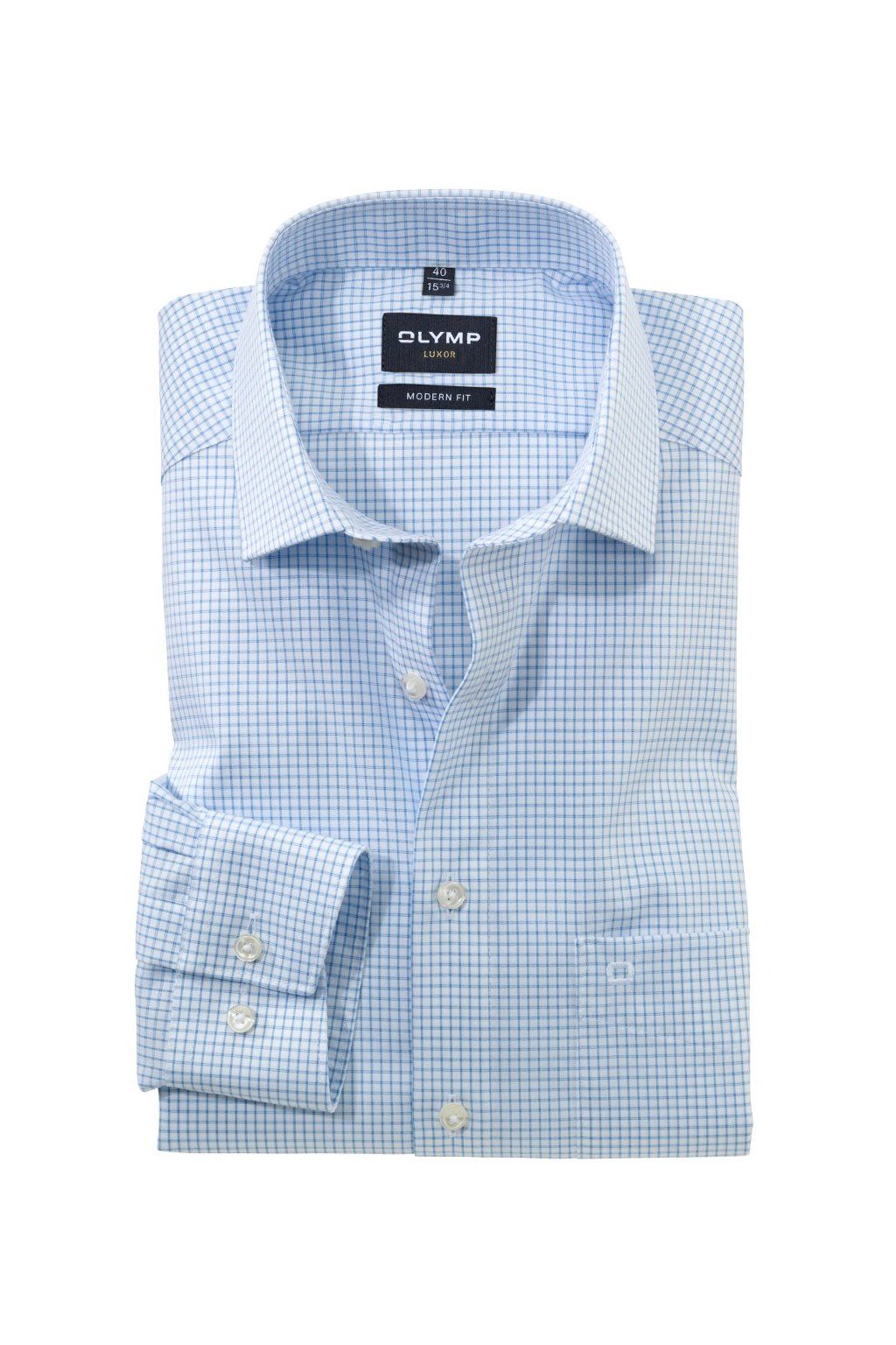 Košile Olymp Modern Fit Luxor - Karo - modrá