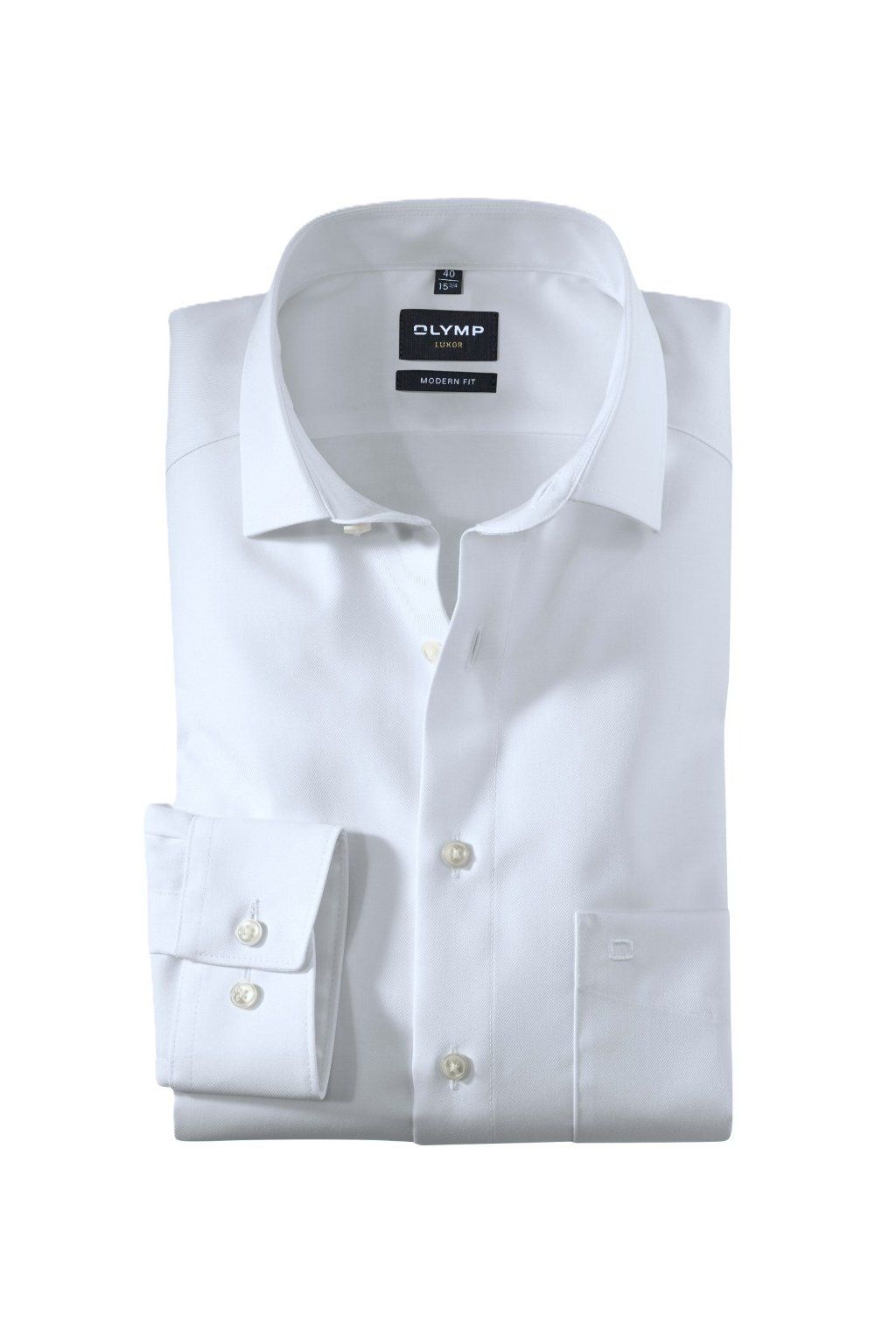 Košile Olymp Modern Fit Luxor s prodlouženým rukávem - Twill - neprůhledná bílá