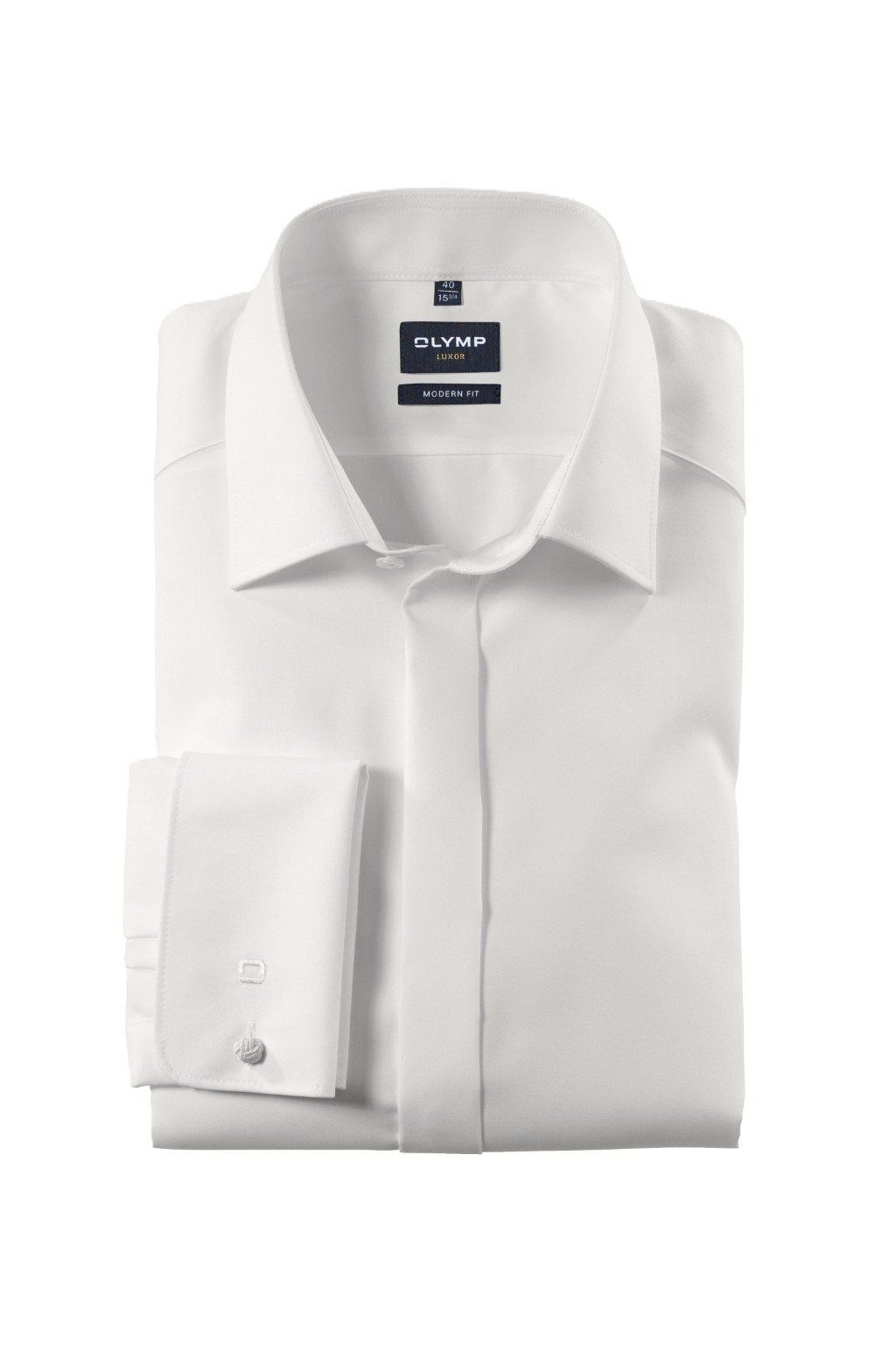 Společenská pánská košile OLYMP Luxor Soirée ve střihu Modern Fit s dlouhým rukávem nabízí dokonale čistý formální vzhled díky kryté léze a dvojité manžetě na manžetové knoflíčky. 100% bavlna je příjemná na nošení a nežehlivá úprava zajistí perfektní vzhled po celý večer. Ideální na svatbu, ples i další společenské příležitosti.