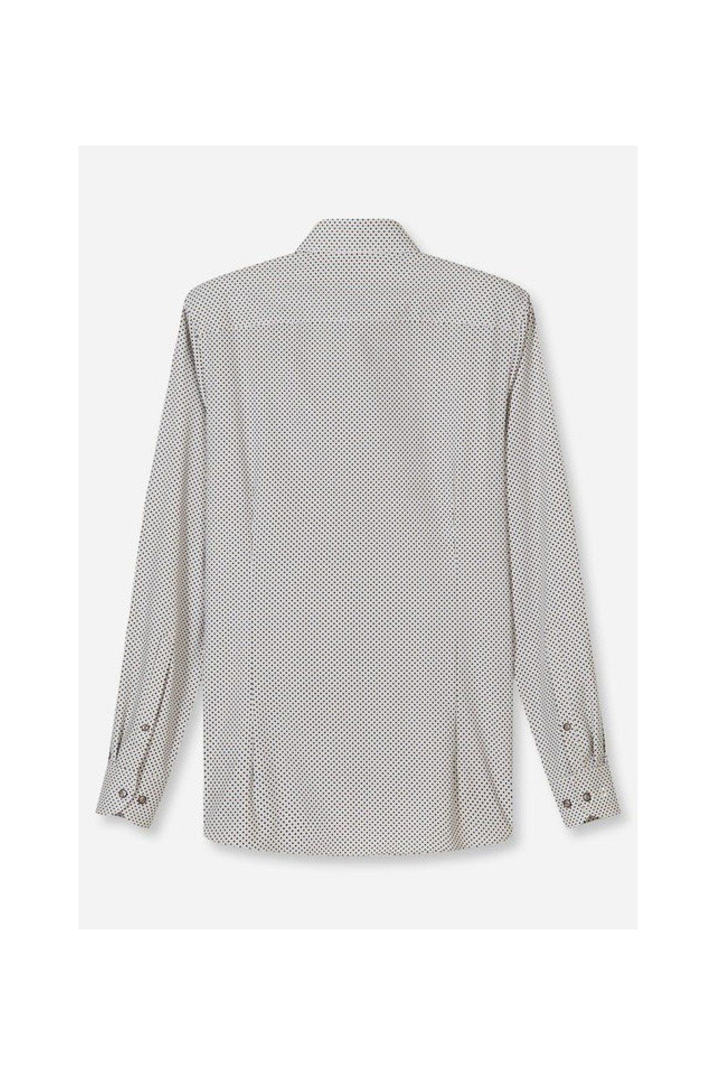 Jemný pravidelný vzor dodává košili osobitý charakter a vizuální hloubku, díky které nepůsobí fádně, ale stále zůstává elegantní a dobře kombinovatelná. Skvěle funguje jak v business prostředí, tak i v uvolněnějším outfitu.