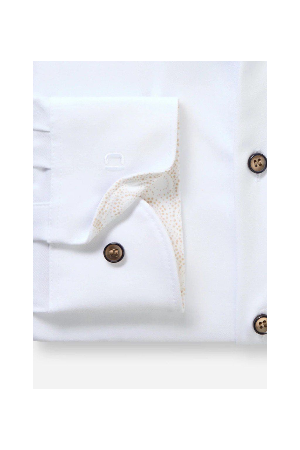 Na první pohled působí čistě a minimalisticky, při bližším pohledu ale zaujmou decentní vzory na vnitřní straně límečku a manžet. Právě tyto detaily dodávají košili osobitý charakter, aniž by narušily její univerzální využití.