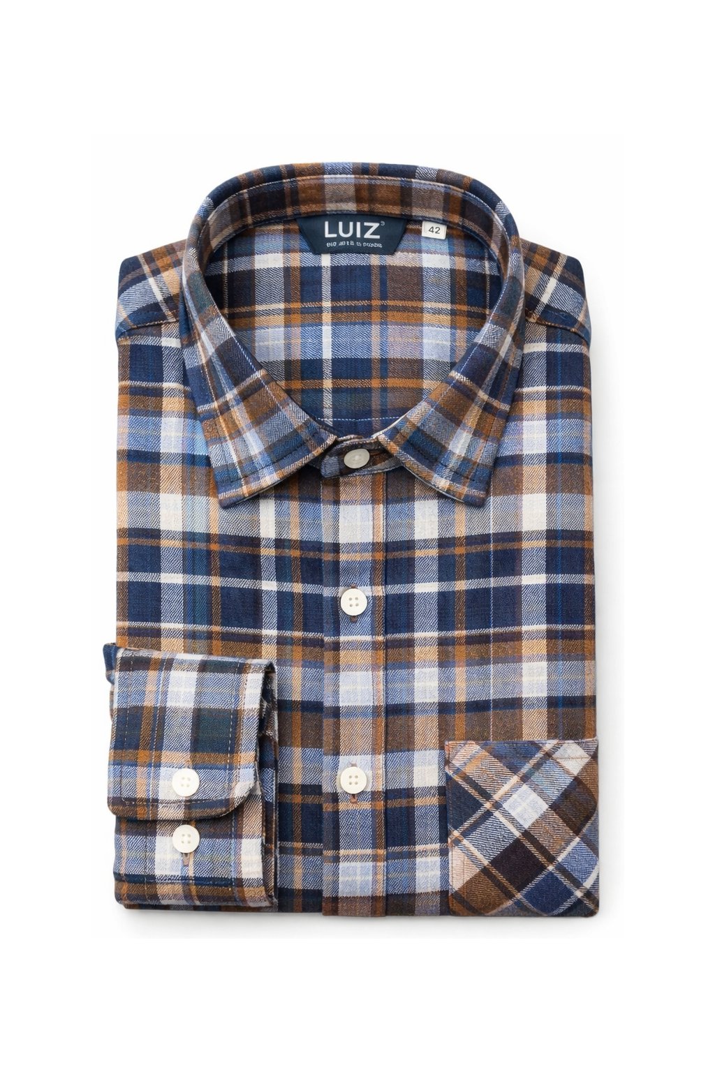 Klasická košile ze 100% bavlněného flanelu pro muže, kteří ocení kvalitní zpracování a pohodlný střih Comfort Fit. Hnědo-modrá kombinace a dvě náprsní kapsy s knoflíčky dodávají košili stylový vzhled. Ideální volba pro každodenní nošení i společenské události.