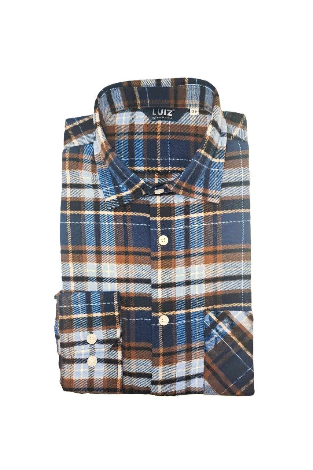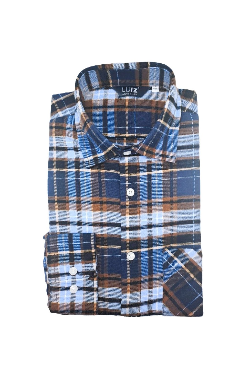 Klasická košile ze 100% bavlněného flanelu pro muže, kteří ocení kvalitní zpracování a pohodlný střih Comfort Fit. Hnědo-modrá kombinace a dvě náprsní kapsy s knoflíčky dodávají košili stylový vzhled. Ideální volba pro každodenní nošení i společenské události.