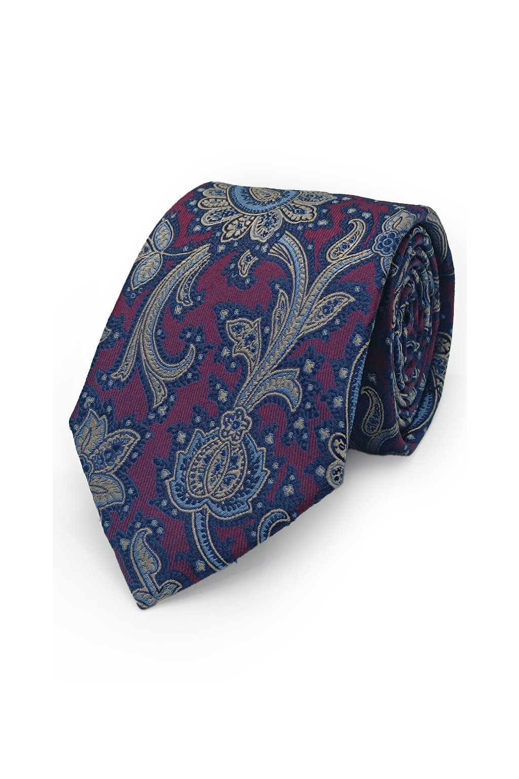 Hedvábná kravata Eterna - kašmírové květy bordó