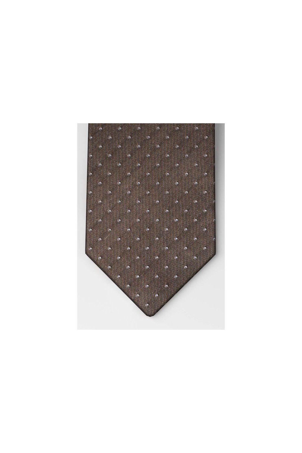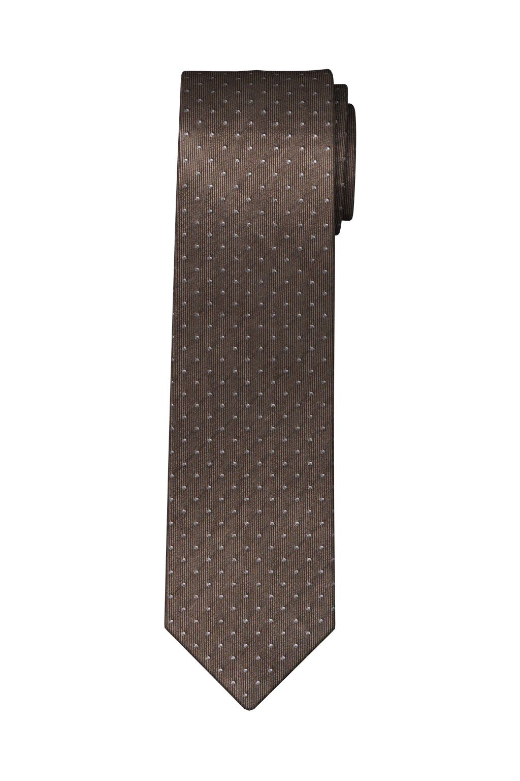 Hedvábná slim kravata OLYMP - jemný puntík - hnědá