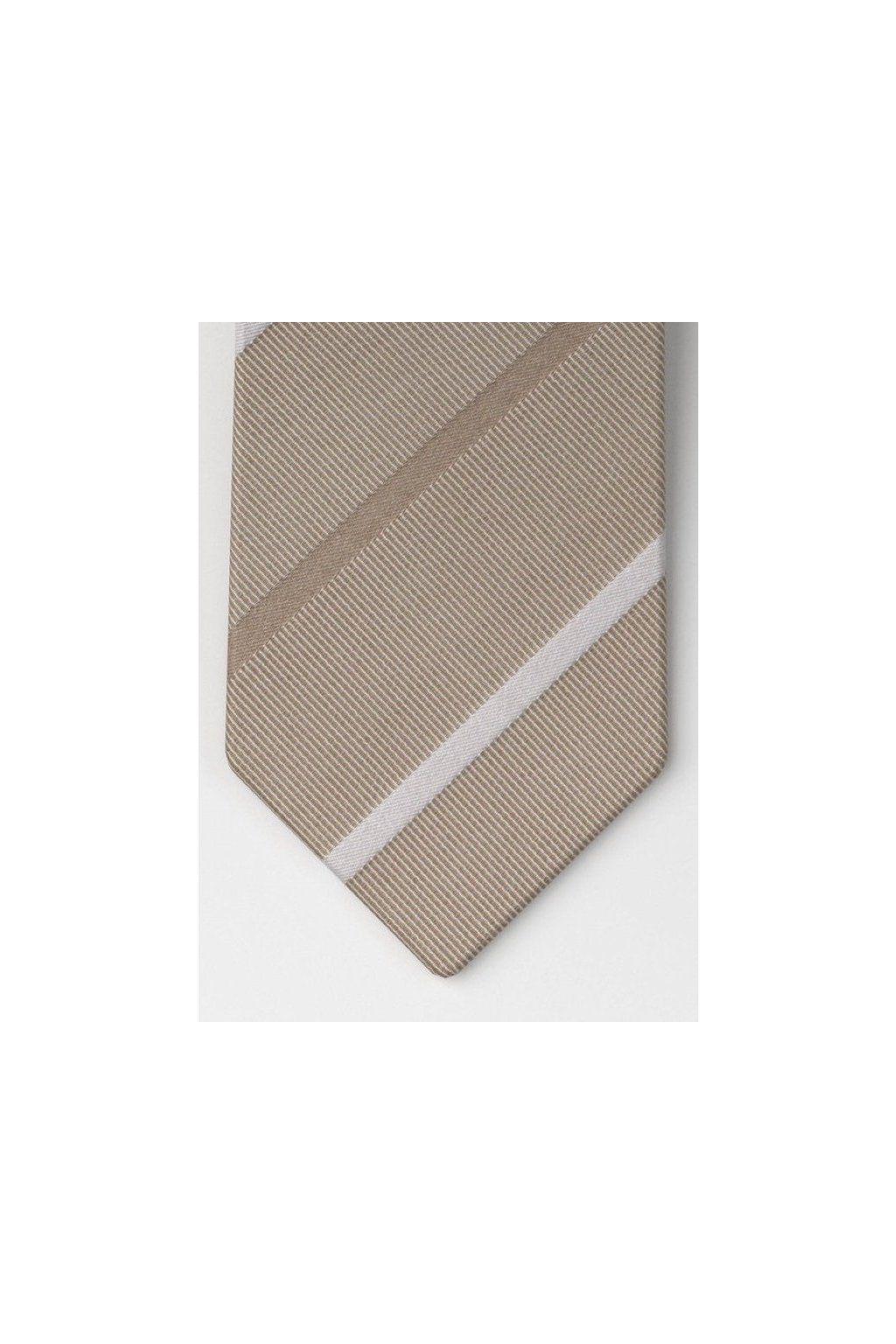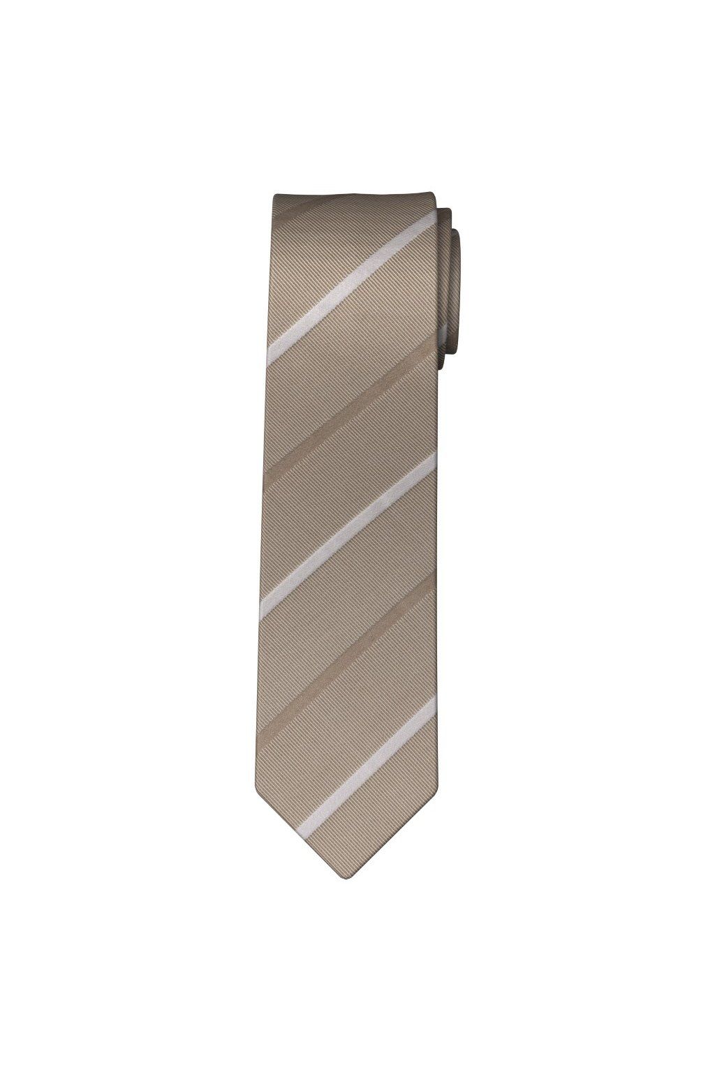 Hedvábná slim kravata OLYMP - pruhy - béžová