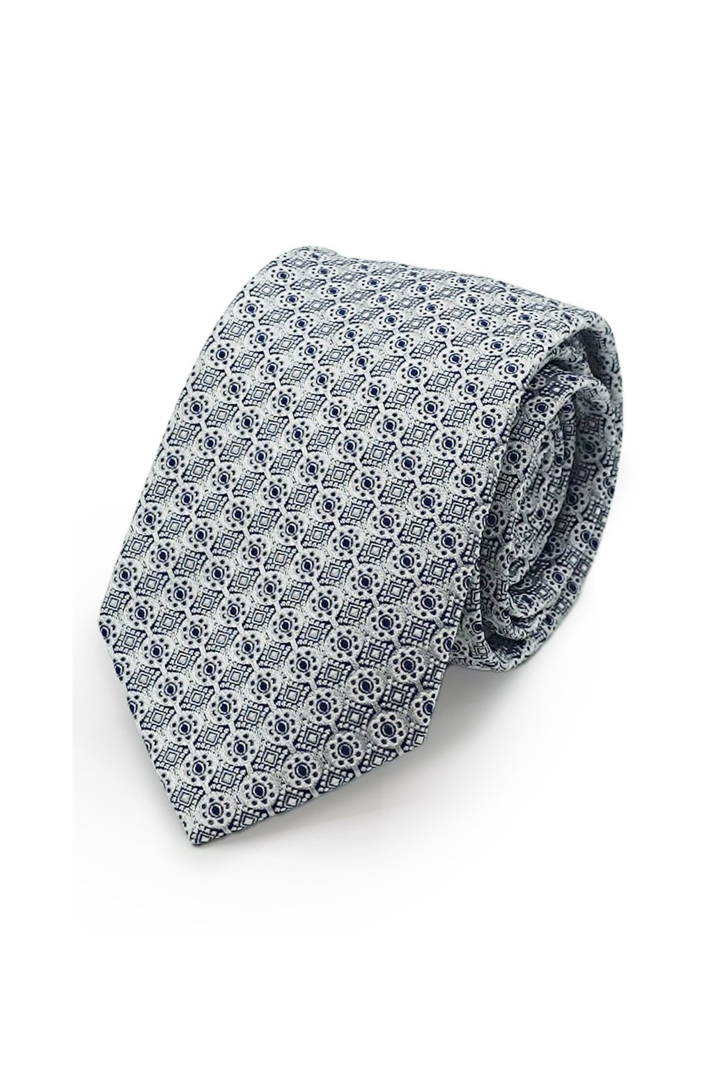 Prodloužená kravata Carlo Cardini - stříbrná / navy