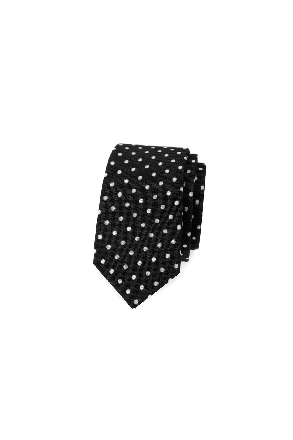 Úzká Kravata Avantgard - černá s bílými puntíky