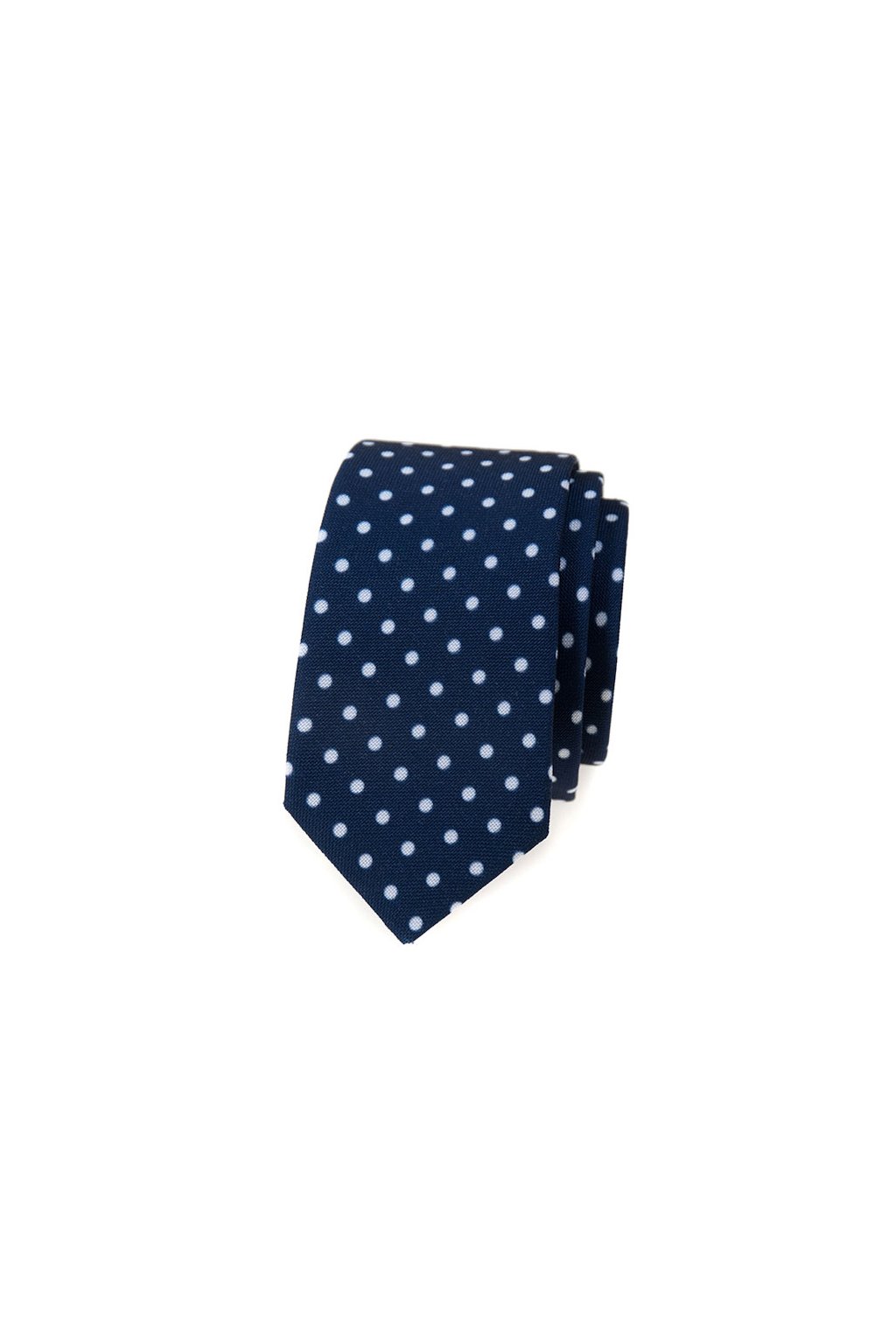 Úzká Kravata Avantgard - modrá s bílými puntíky