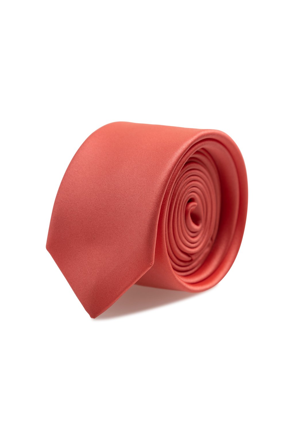 Slim kravata s kapesníčkem Carlo Cardini - korálová
