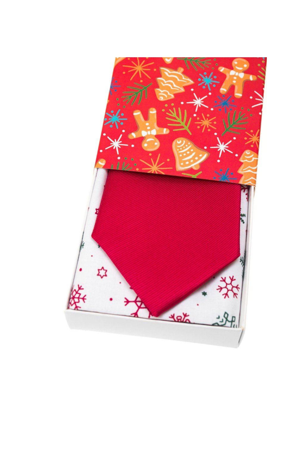 Vánoční dárkový set - červená kravata s kapesníčkem v papírové krabičce
