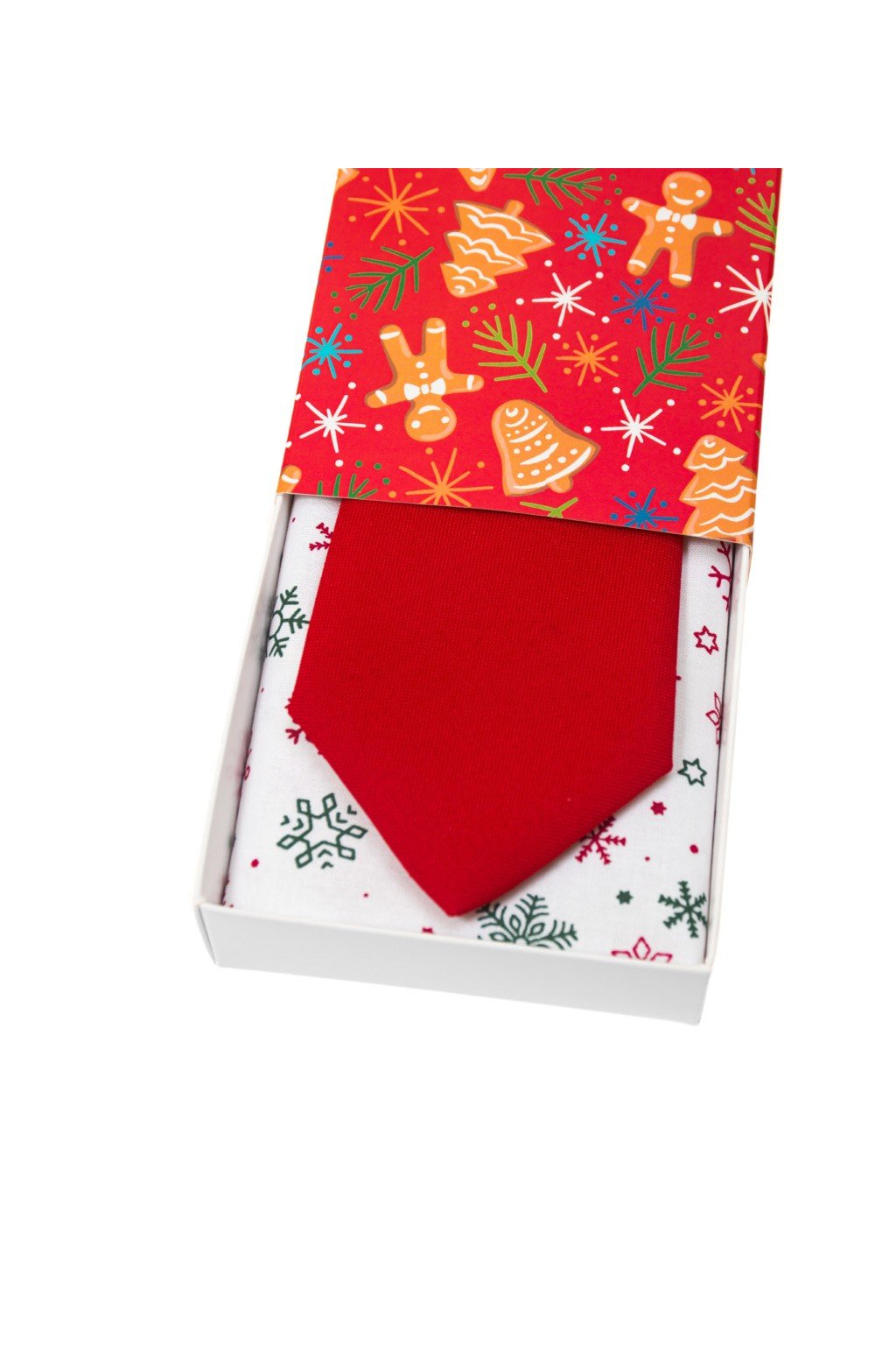 Vánoční dárkový set - červená kravata s kapesníčkem v papírové krabičce