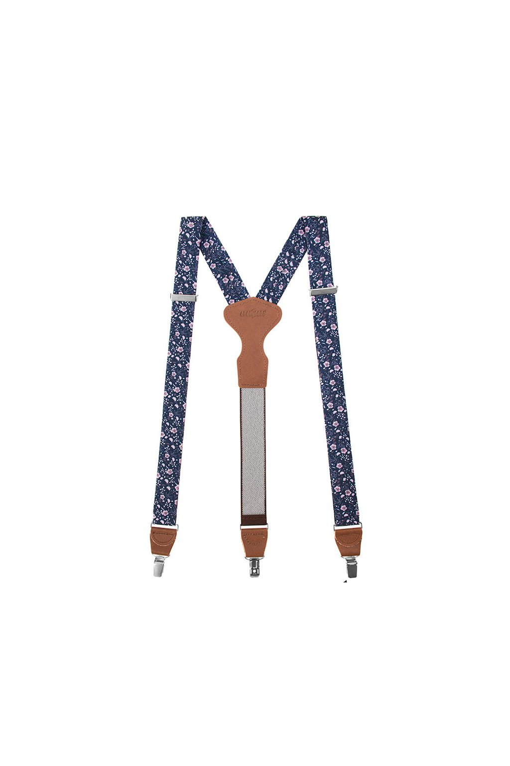 Pánské šle Avantgard - modré - pudrové květy, hnědá kůže