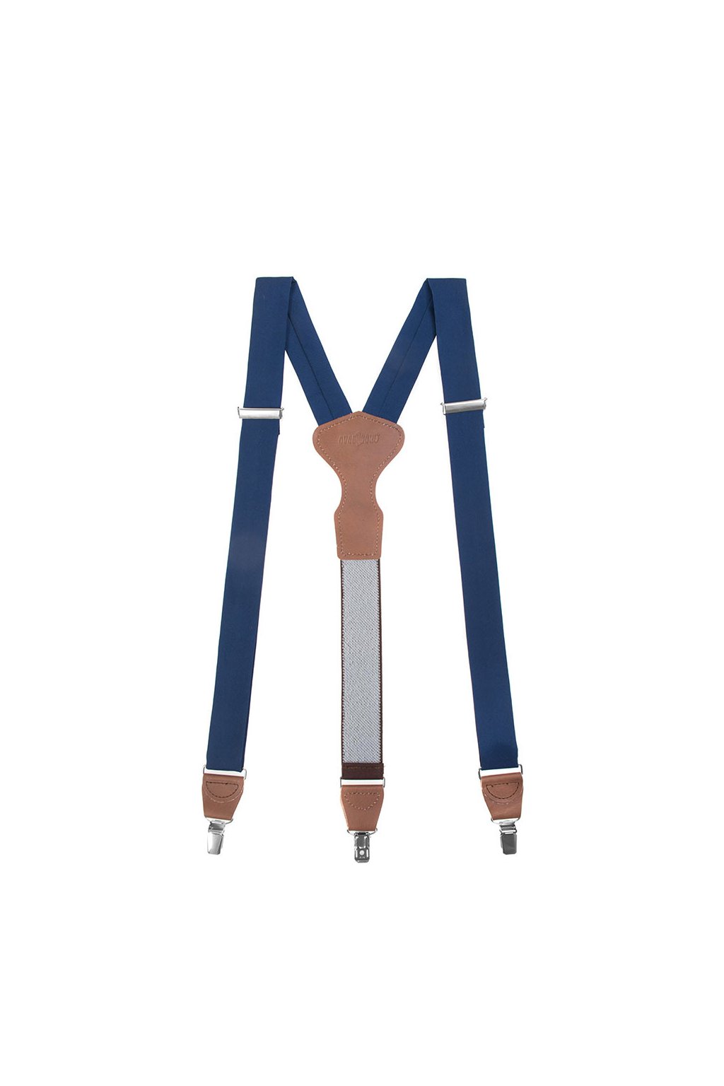 Pánské šle Avantgard - navy modré, tmavě hnědá kůže