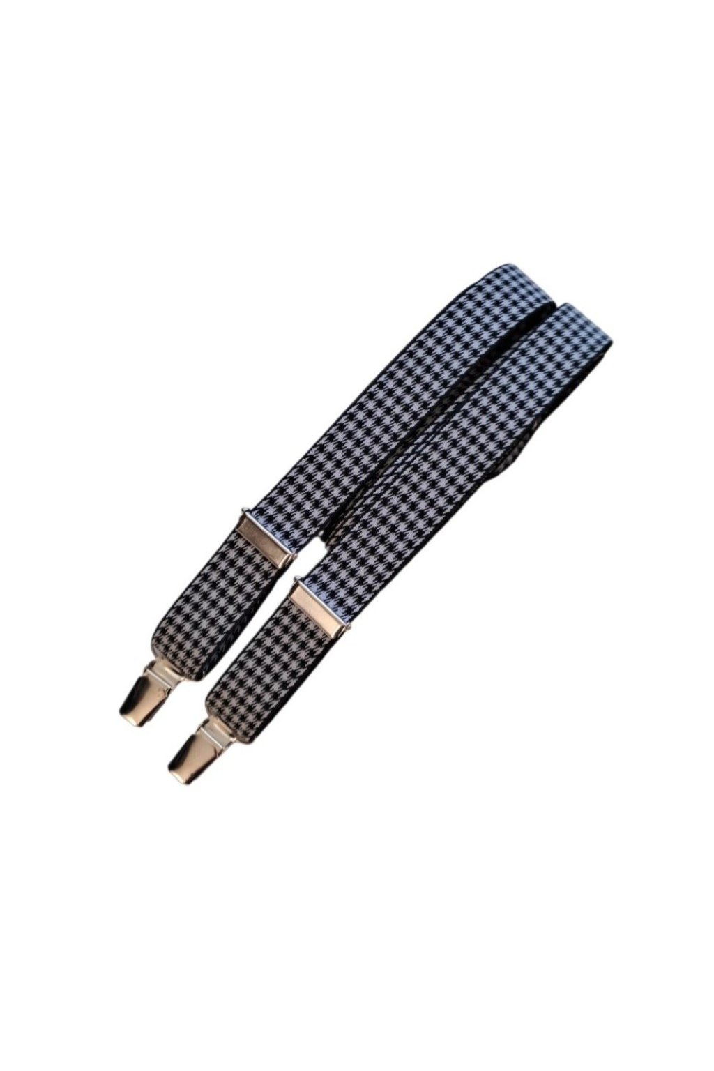 Úzké černé pánské šle s výrazným vzorem pepito pro muže, kteří se nebojí stylového detailu. Provedení X, šířka 25 mm a délka pro postavu až 195 cm zajistí pohodlí i spolehlivé držení kalhot po celý den.