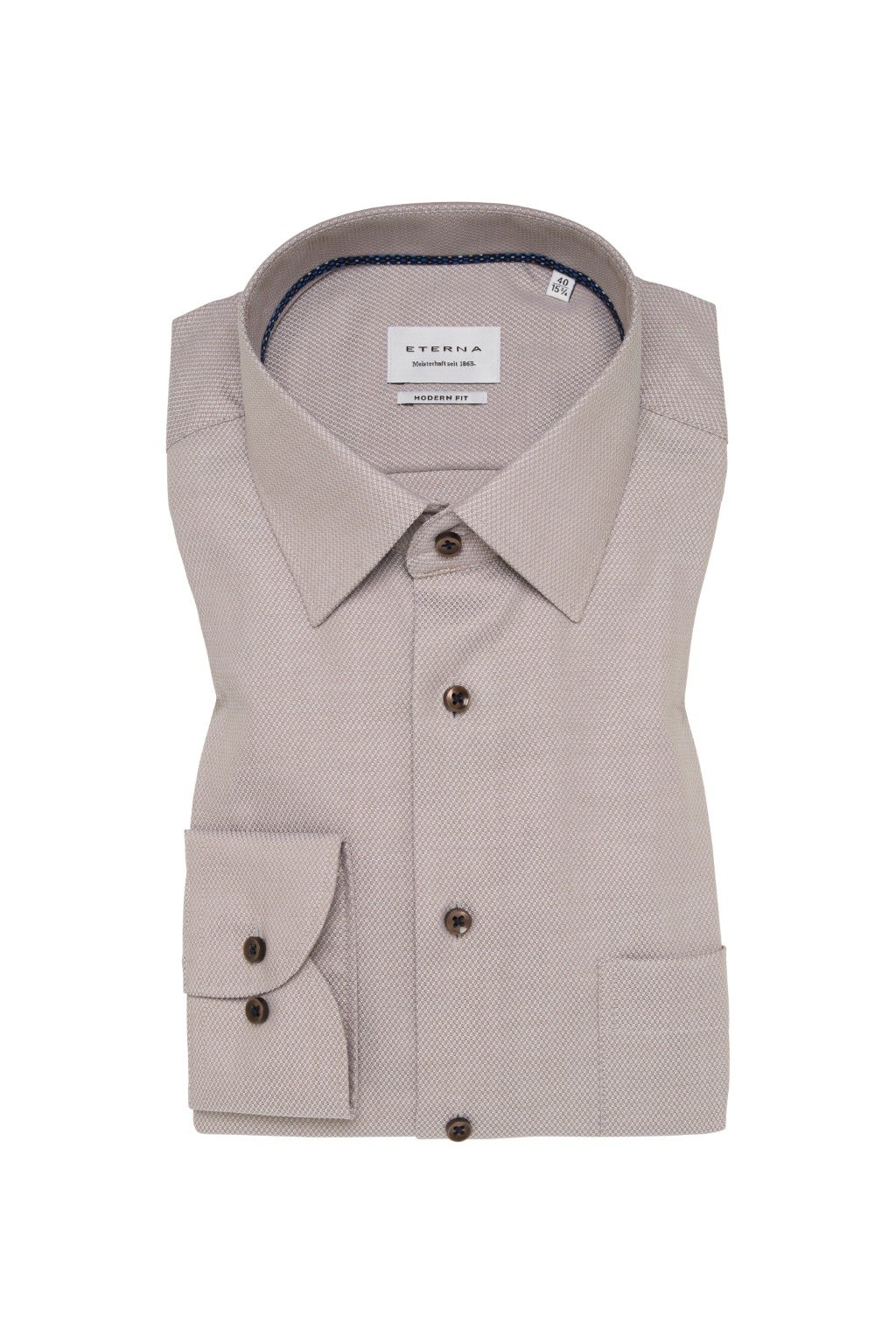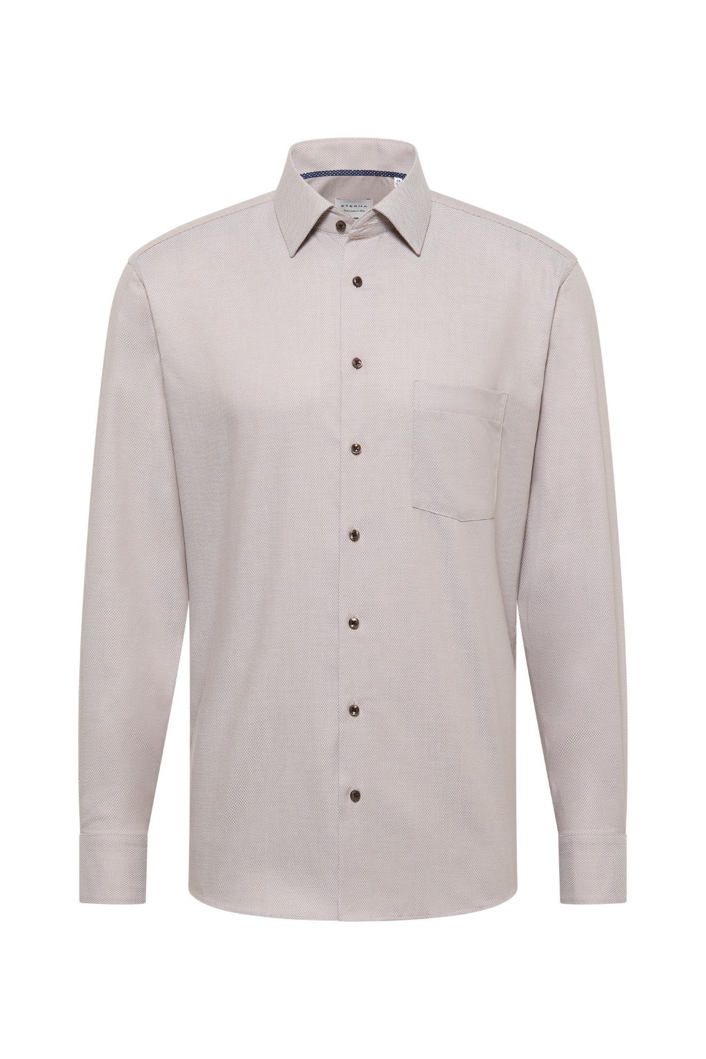 Elegantní béžová košile Eterna Modern Fit s prodlouženým rukávem, strukturou látky a náprsní kapsou. Ze 100% bavlny s nežehlivou úpravou – vypadá perfektně celý den.