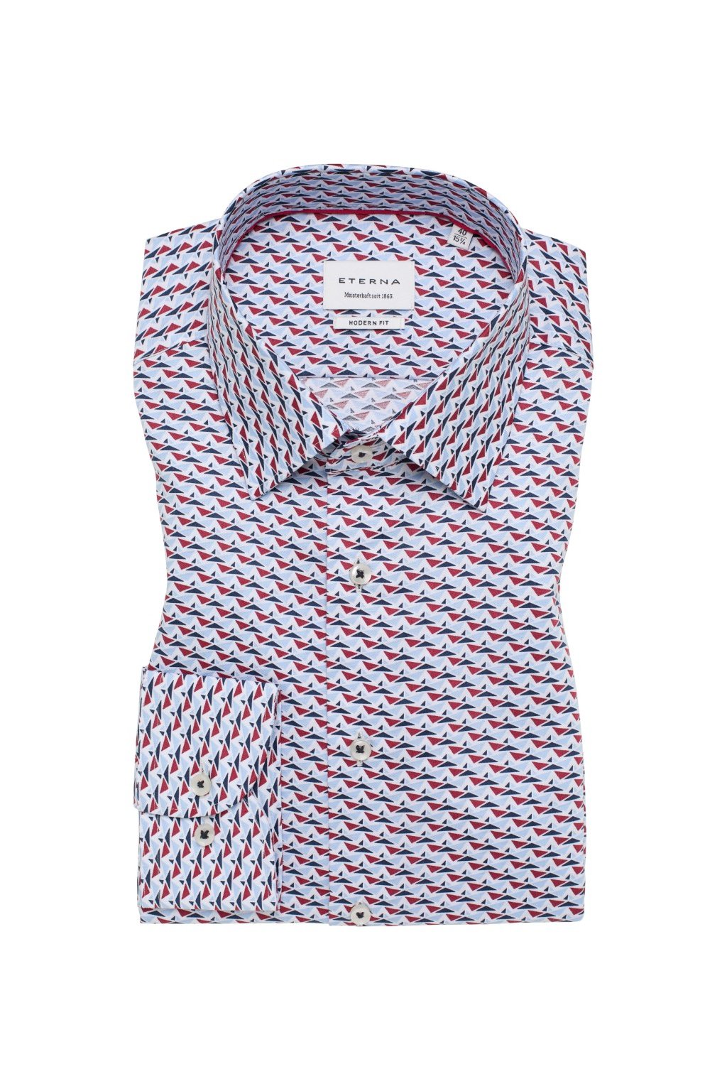 Pánská košile Eterna Modern Fit s jemným potiskem lodiček v modré a červené barvě je vyrobena ze 100% bavlny s nežehlivou úpravou. Pohodlný střih pro běžnou mužnou postavu zajistí komfort po celý den. Košile je bez kapsičky a působí čistým, moderním dojmem.