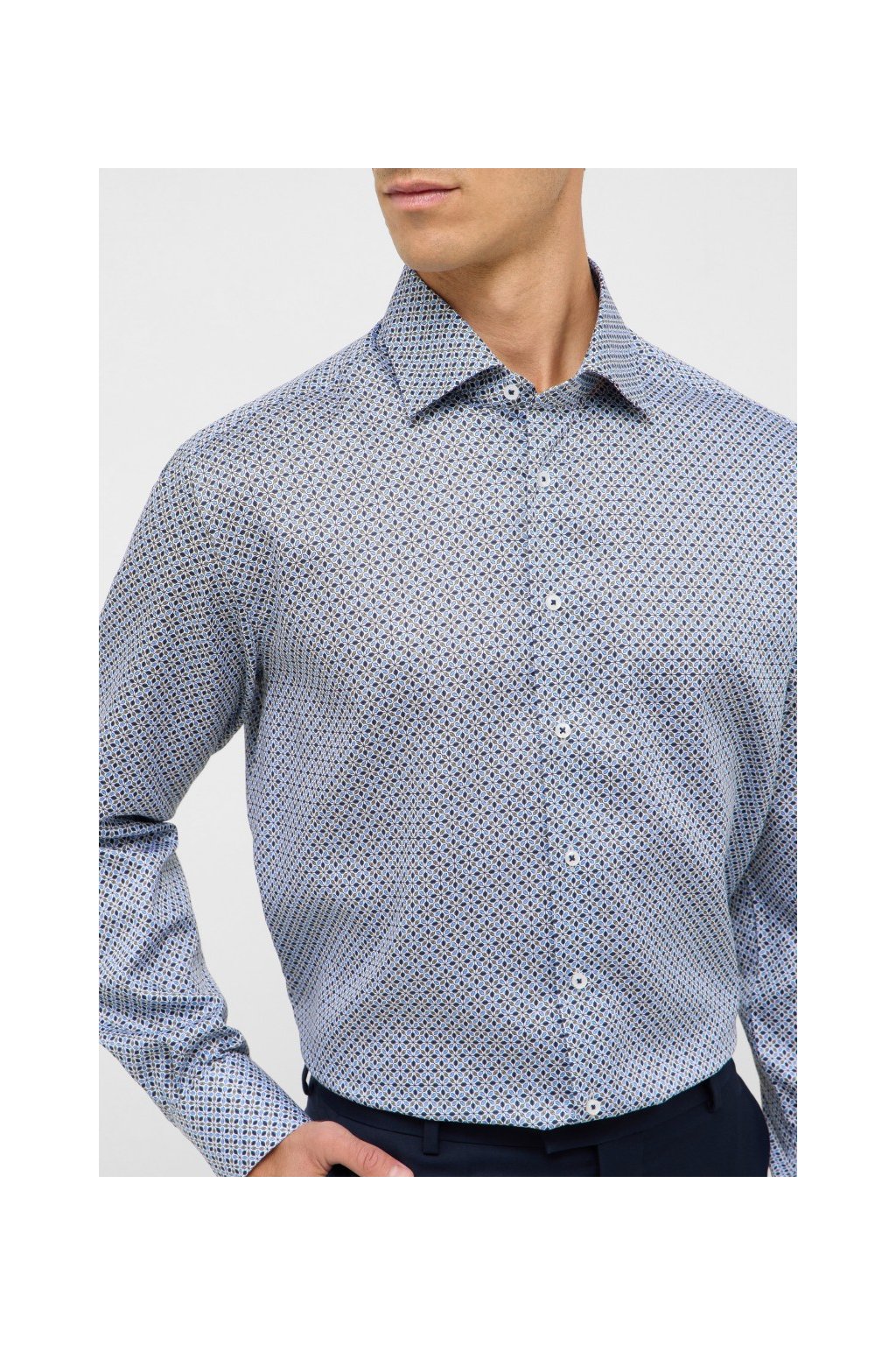 Košile je ušita ze 100% bavlny, která je příjemná na dotek, prodyšná a zaručí pohodlí i při celodenním nošení. Límeček Kent dodává univerzální charakter a díky tomu se hodí k obleku, saku i pod svetr. Jemný elegantní vzor a knoflíčky prošité nití v barvě košile podtrhují její moderní vzhled. Praktická délka rukávu 65 cm.