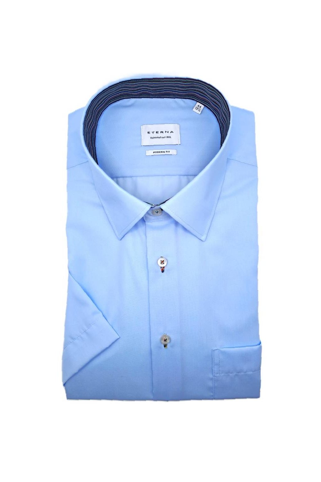 Košile Eterna Modern Fit Uni Popeline s krátkým rukávem modrá