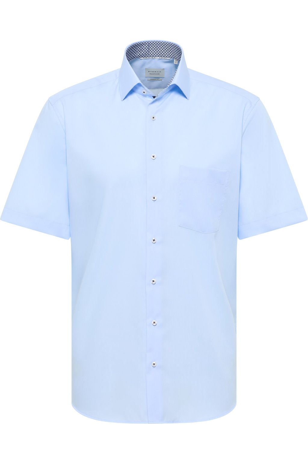 Košile Eterna Modern Fit Uni Popeline s krátkým rukávem modrá