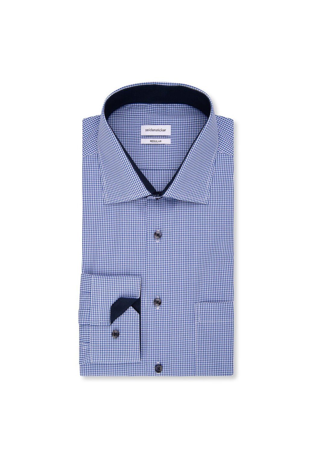 Regular košile Seidensticker s jemnou drobnou kostičkou působí čistě, ale rozhodně ne nudně. Kontrastní límec a manžety dodávají stylový detail, který vynikne při nošení. Lehký popelín a nežehlivá bavlna zajistí pohodlí i upravený dojem po celý den.