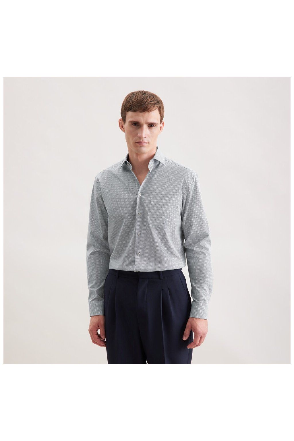 Košile Seidensticker s drobným geometrickým vzorem oživí outfit, ale zůstává elegantní. Na dálku působí decentně, zblízka zaujme detail. Nežehlivá 100% bavlna zajistí pohodlí i upravený styl po celý den.