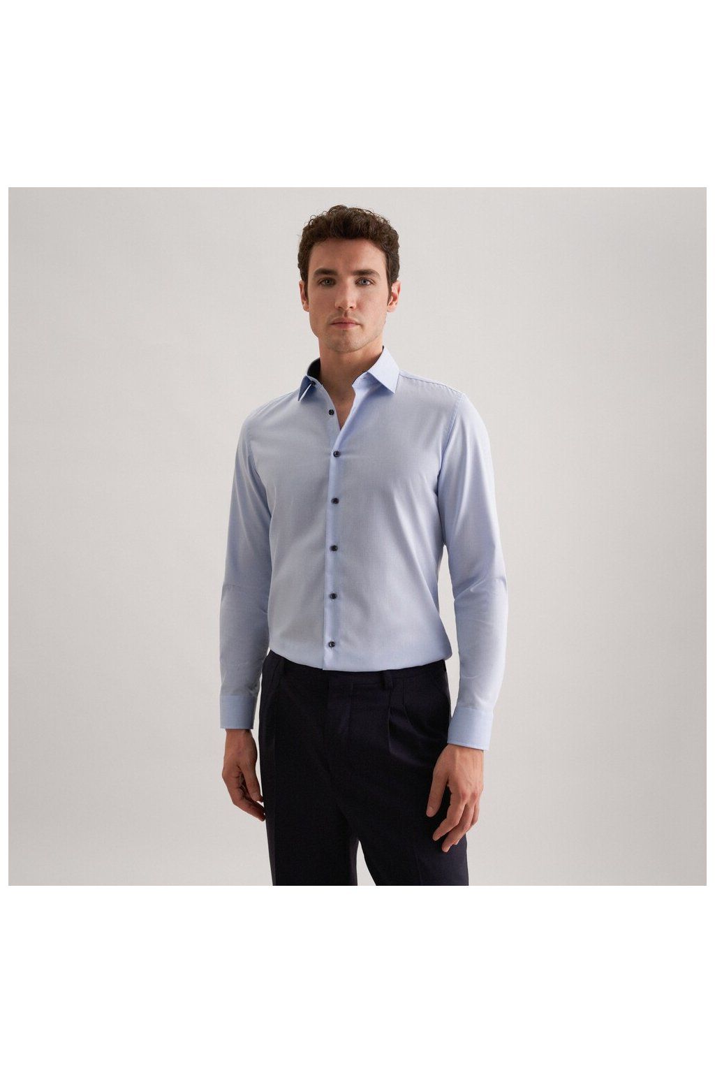 Shaped košile Seidensticker v jednobarevném provedení doplňuje vzorovaný vnitřní límec a tmavé knoflíky. Lehce projmutý střih zajistí pohodlí i upravený dojem. Nežehlivá bavlna usnadní péči a udrží košili v perfektní kondici po celý den.