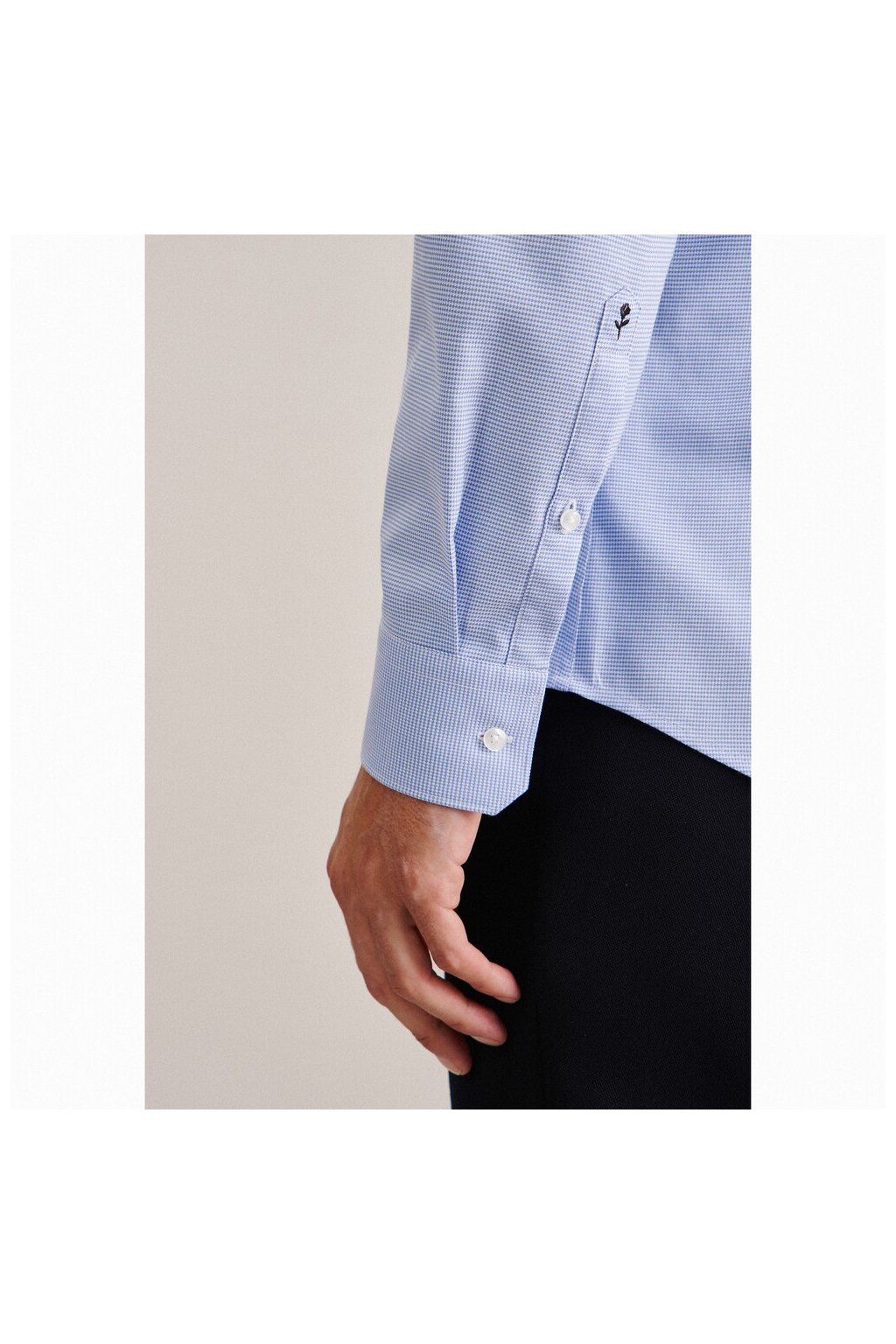 Na první pohled zaujme jemnou, elegantní strukturou, která dodává košili hloubku a sofistikovaný charakter. Díky ní nepůsobí jednolitě, ale naopak velmi vkusně a luxusně, ať už ji obléknete do práce nebo na slavnostnější příležitost.