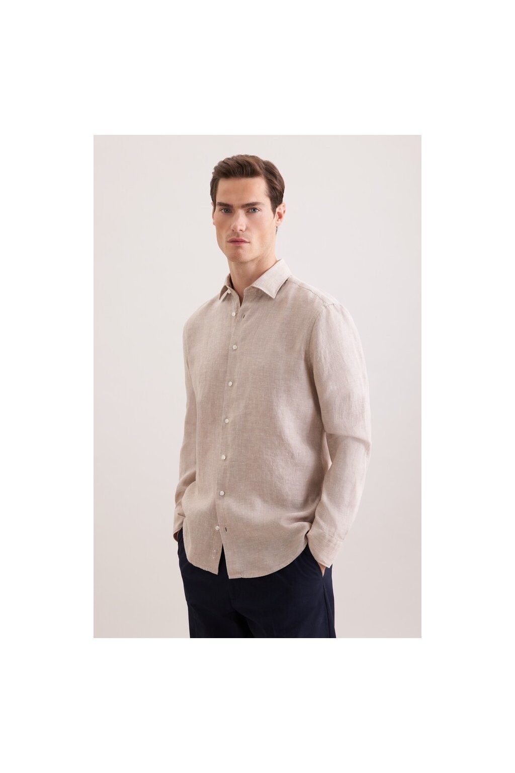 Lněná Košile Seidensticker Regular béžová