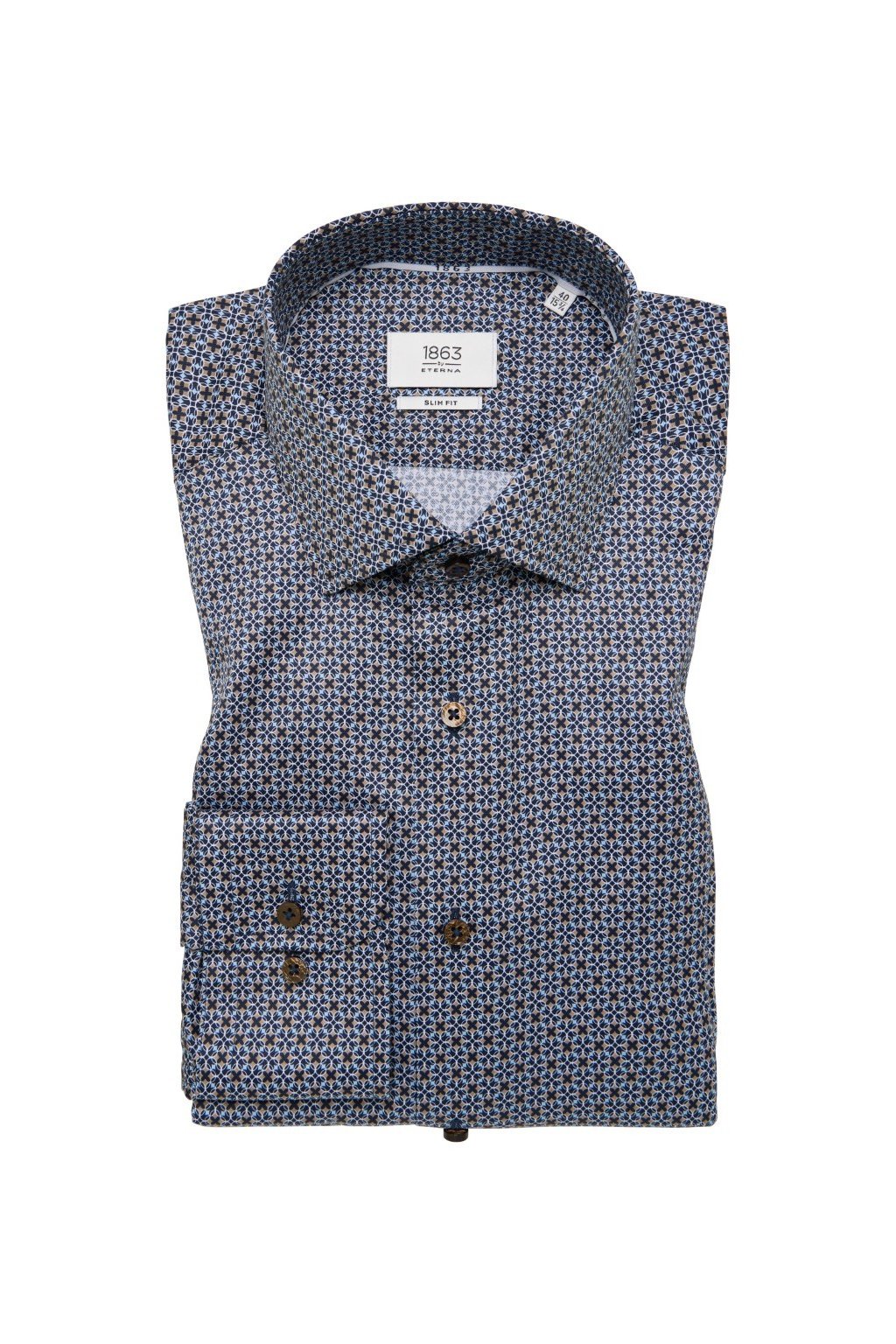 Košile Eterna Slim Fit Print s extra prodlouženým rukávem s tištěným vzorem modrá / béžová