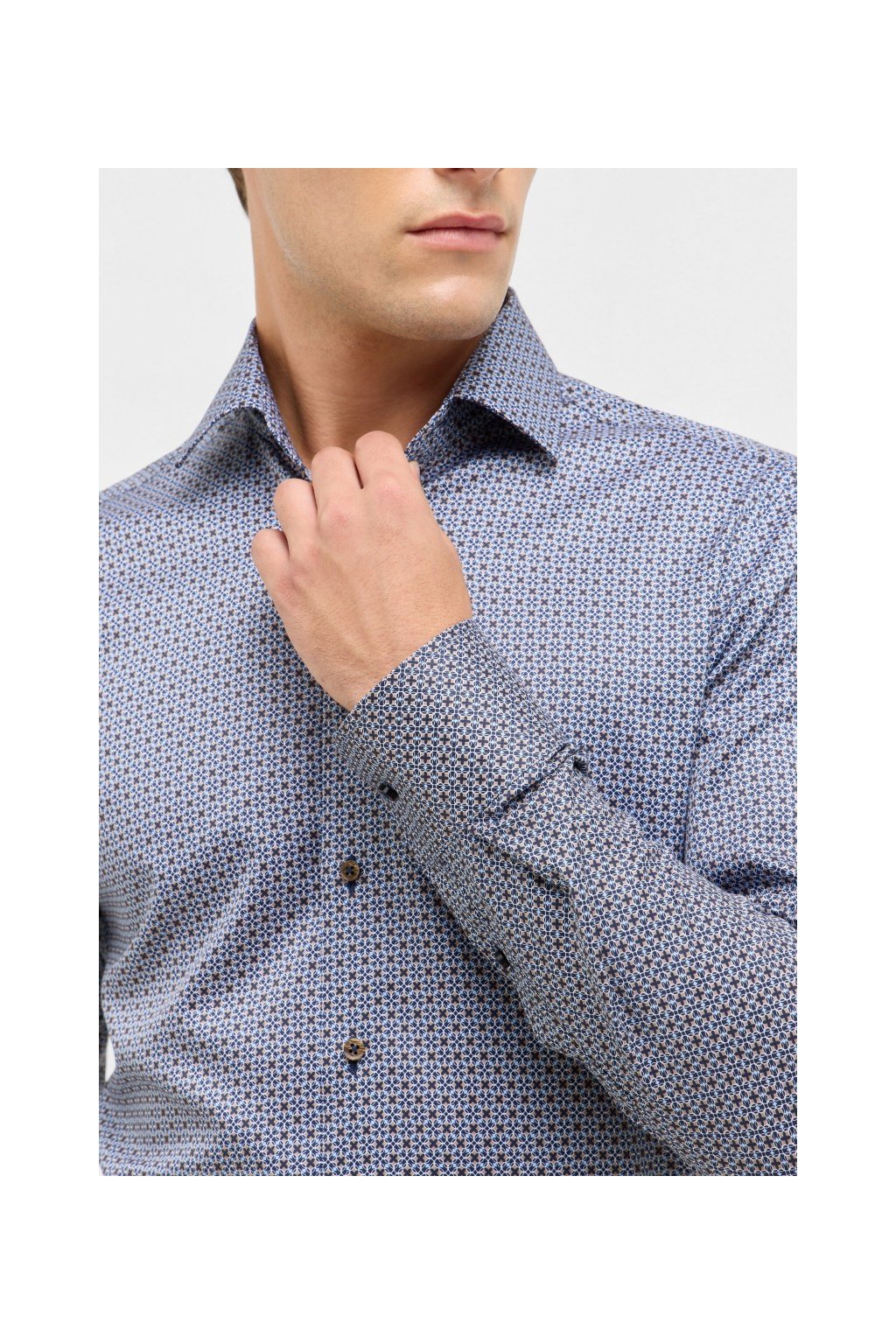 Košile Eterna Slim Fit Print s extra prodlouženým rukávem s tištěným vzorem modrá / béžová