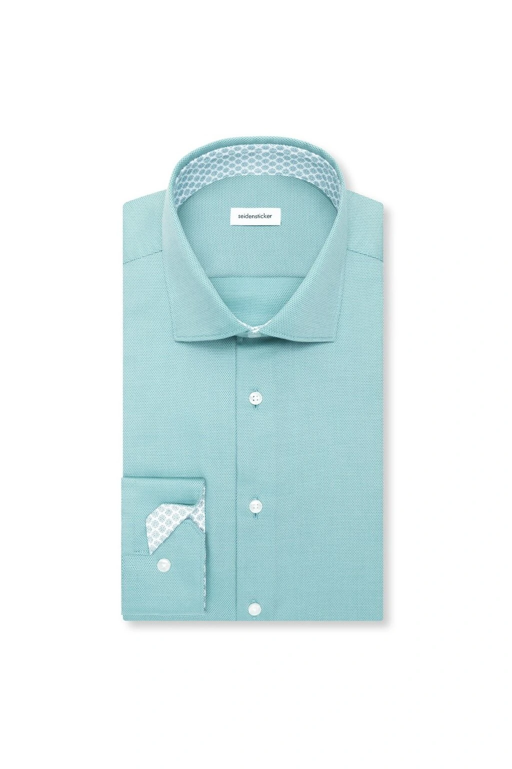 Slim Fit košile Seidensticker v krásné mátové barvě ze 100% bavlny s nežehlivou úpravou. Strukturální tkanina, Kent límeček a čistý design bez kapsy ji předurčují do práce i na společenské příležitosti.