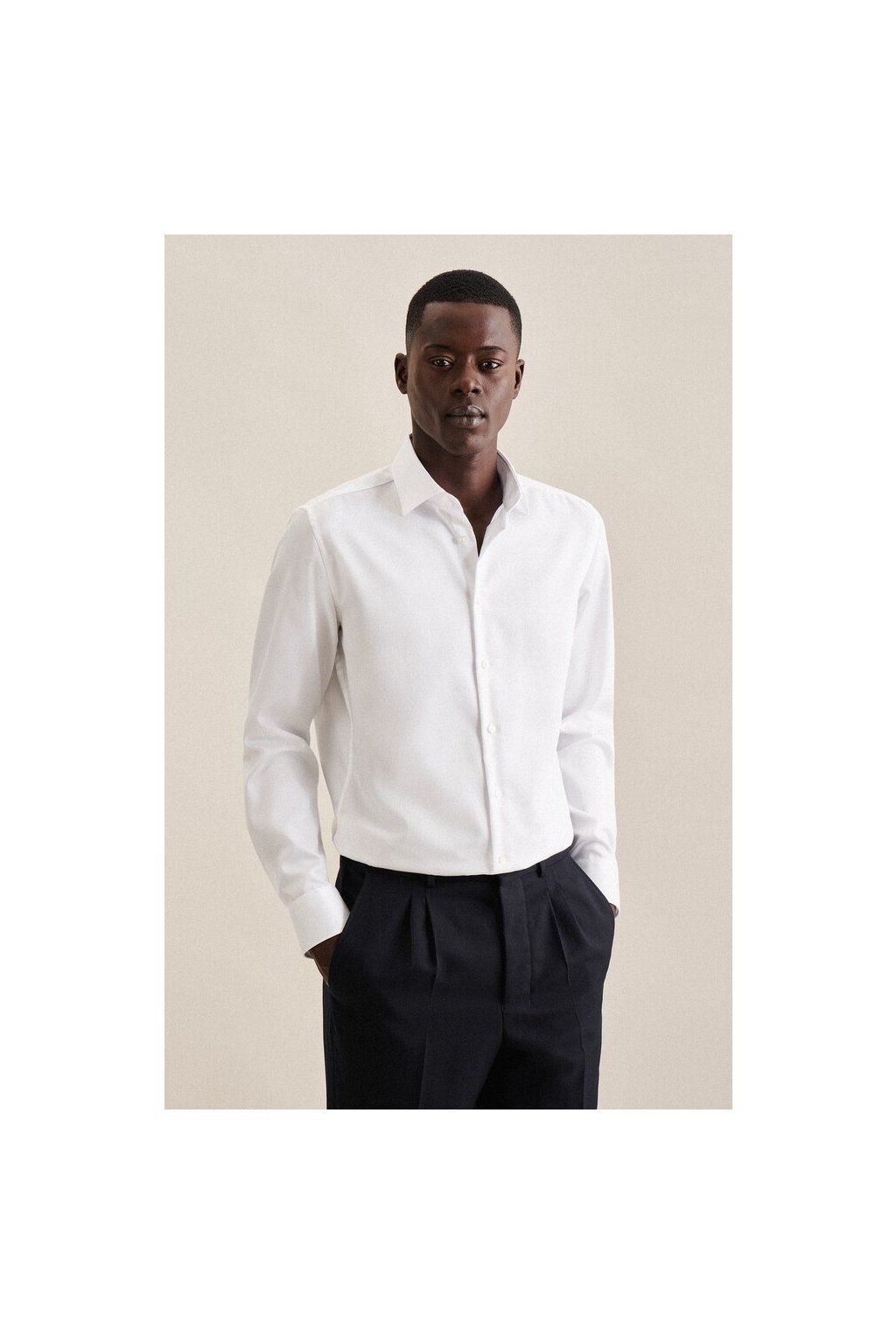 X-Slim košile Seidensticker z kvalitního twillu z dvojité příze působí pevně, neprůhledně a velmi elegantně. Extra úzký střih krásně zvýrazní postavu a dodá outfitu upravený, sebevědomý výraz. Nežehlivá 100% bavlna zajistí, že bude vypadat skvěle po celý den – bez zbytečné námahy.