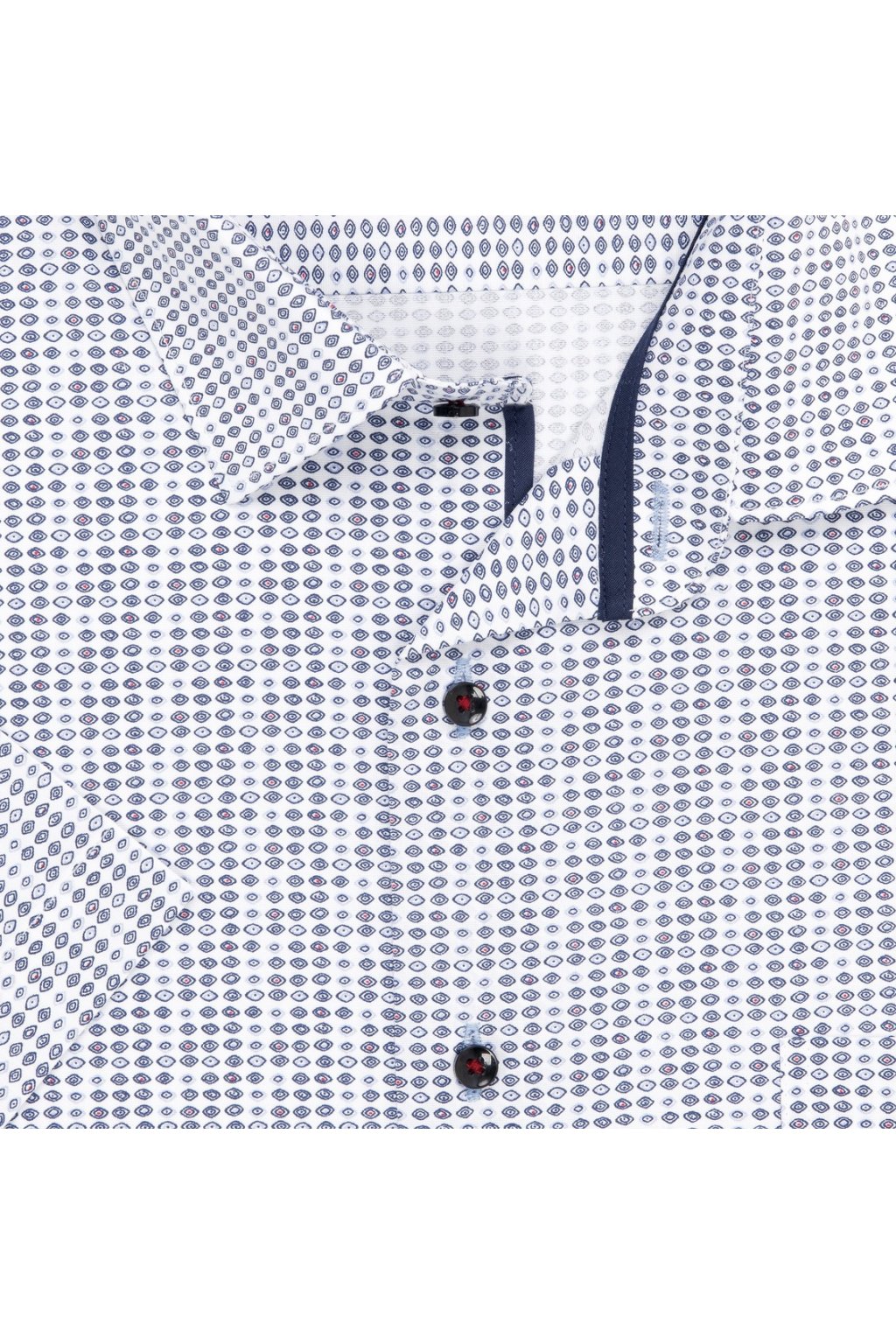 Pánská vzorovaná košile AMJ s krátkým rukávem v proštíhleném střihu Slim Fit. Letní klasika s decentním vzorem. Celkový dojem umocňuje nadčasový límeček Kent. Moderní nádech získává košile díky absenci náprsní kapsy. Tato košile Vás nadchne nejen svým složením (95 % bavlny a 5 % spandexu), ale i easy-care úpravou pro snadné žehlení. Oblíbené české košile.