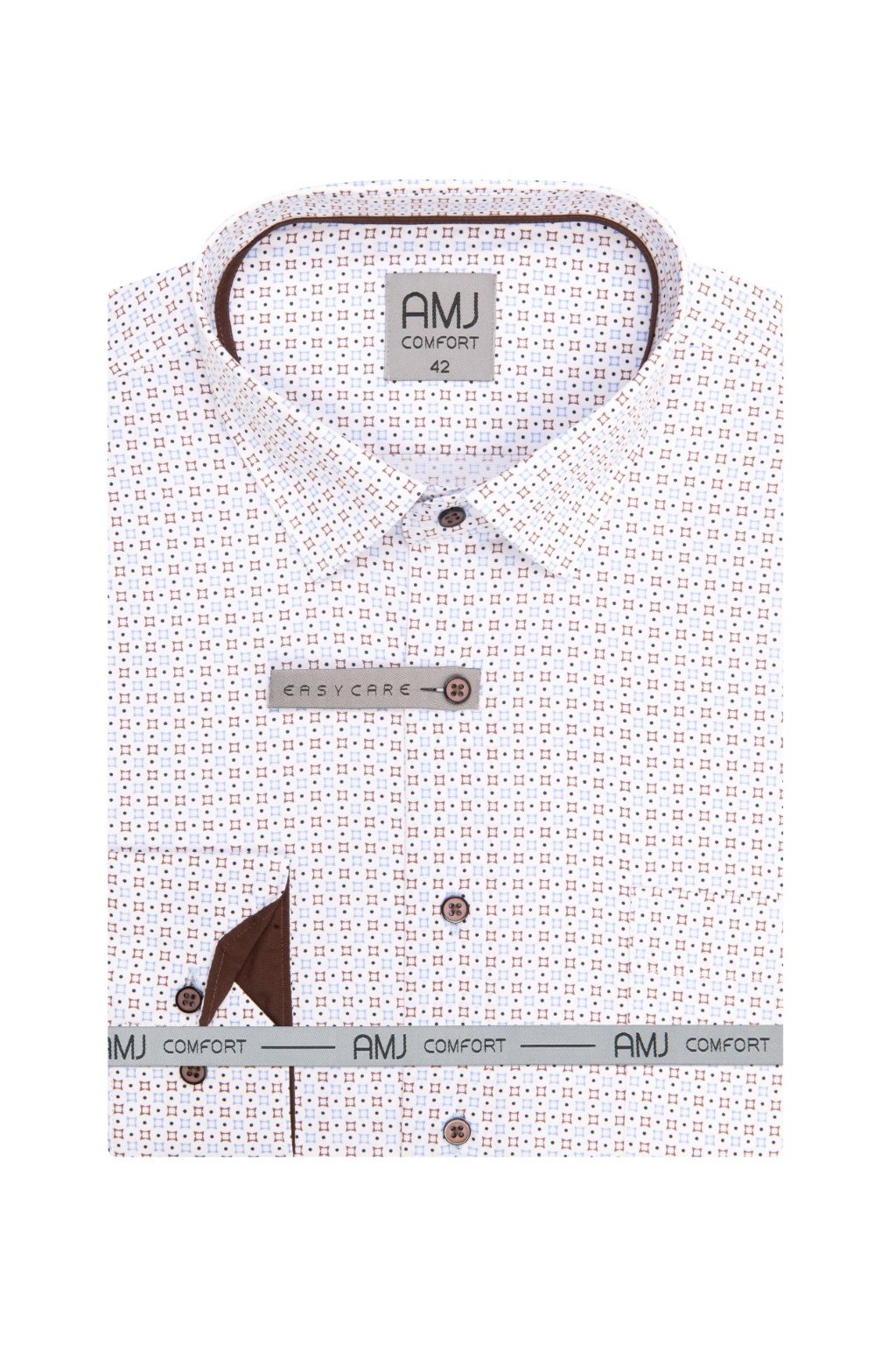 Pánská košile AMJ Slim Fit bílá s hnědým vzorem