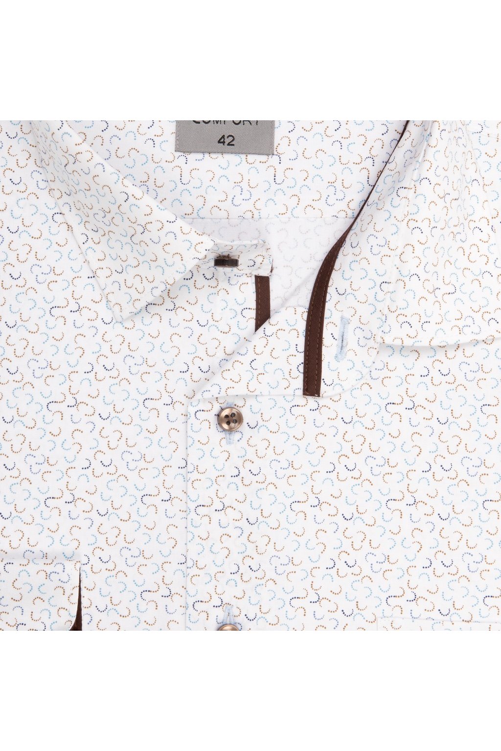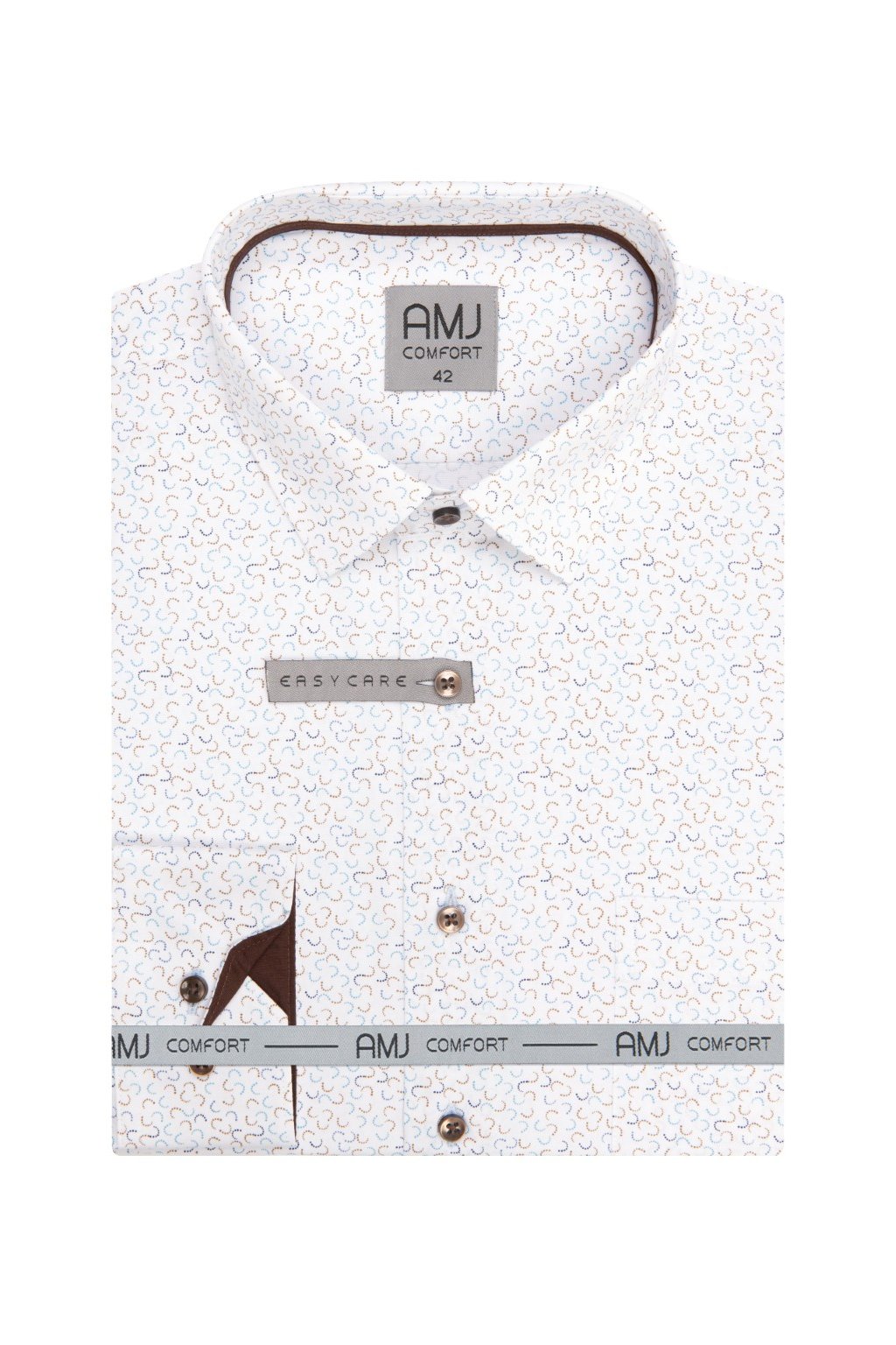 Pánská košile AMJ Slim Fit bílá s hnědým vzorem