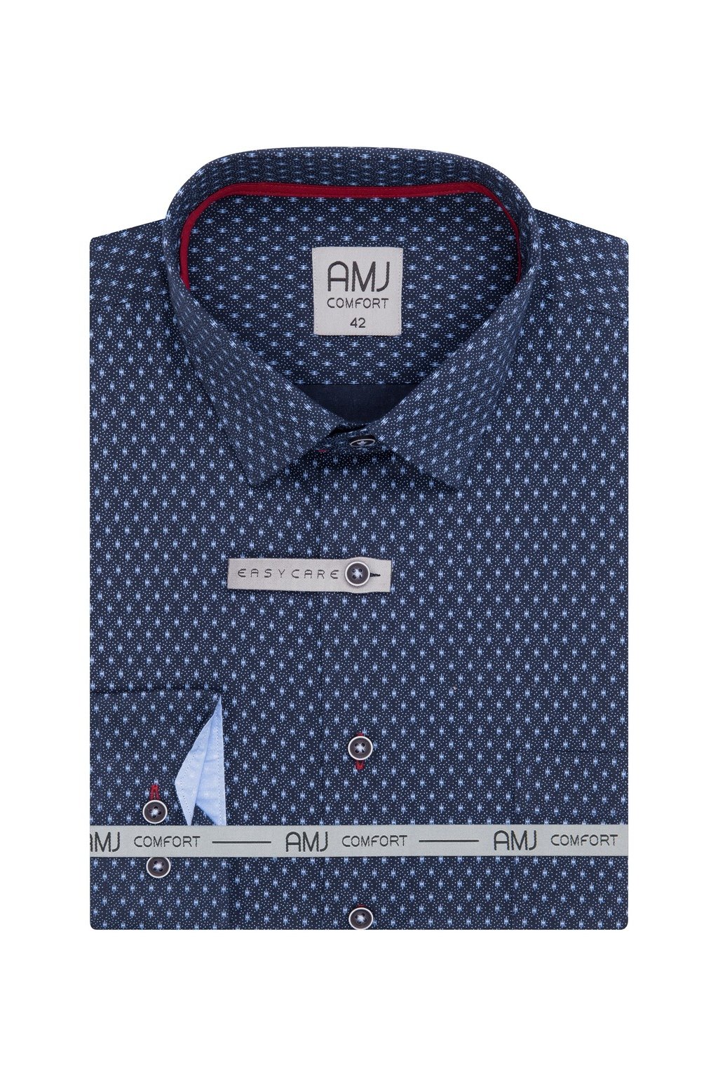 Pánská košile AMJ Slim Fit tmavě modrá s modrým vzorem