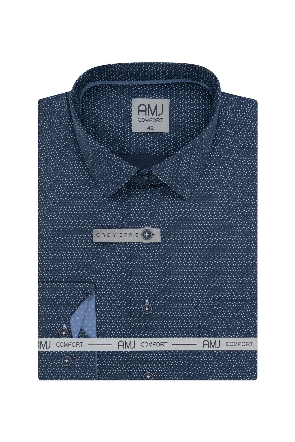 Pánská košile AMJ Slim Fit tmavě modrá se vzorem