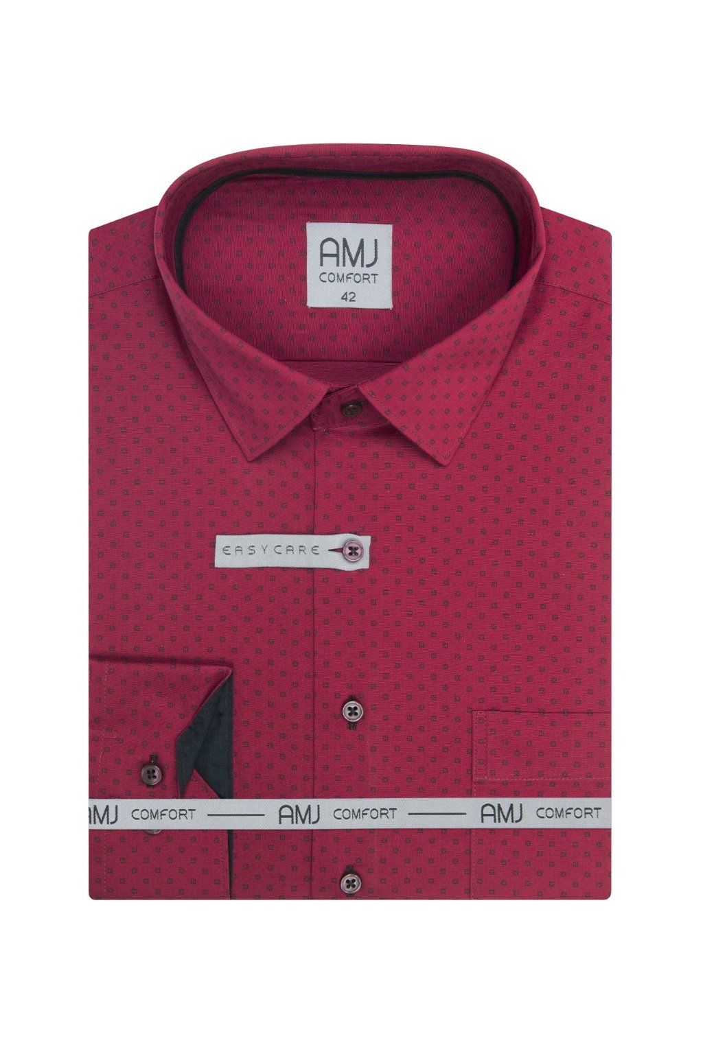 Pánská košile AMJ Slim Fit vínová se vzorem