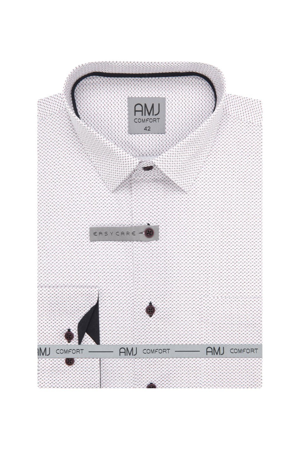 Pánská vzorovaná košile AMJ ve střihu Comfort Fit s Kent límečkem, kontrastním vnitřním límcem a manžetami. Pohodlná a stylová.