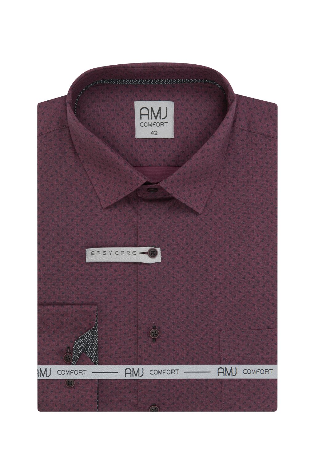 Pánská vzorovaná košile AMJ ve střihu Comfort Fit s Kent límečkem, kontrastním vnitřním límcem a manžetami. Pohodlná a stylová.