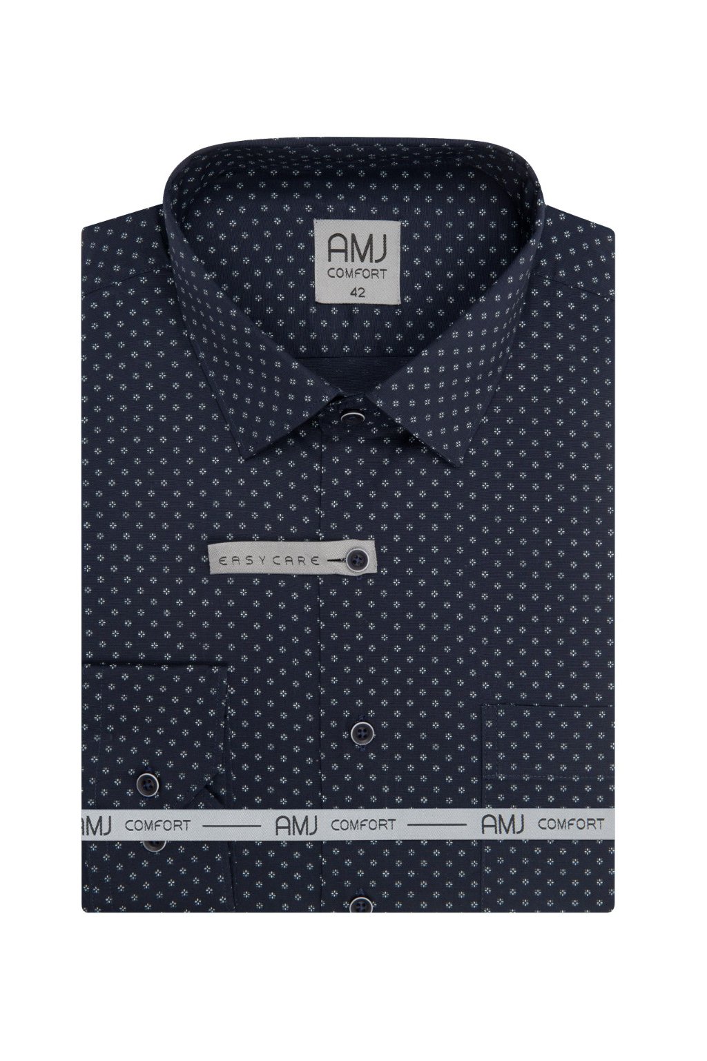 Pánská vzorovaná košile AMJ ve střihu Comfort Fit s Kent límečkem, kontrastním vnitřním límcem a manžetami. Pohodlná a stylová.