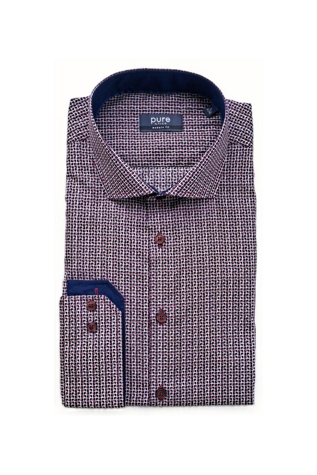 Košile Pure Modern Fit modrý / vínový vzor