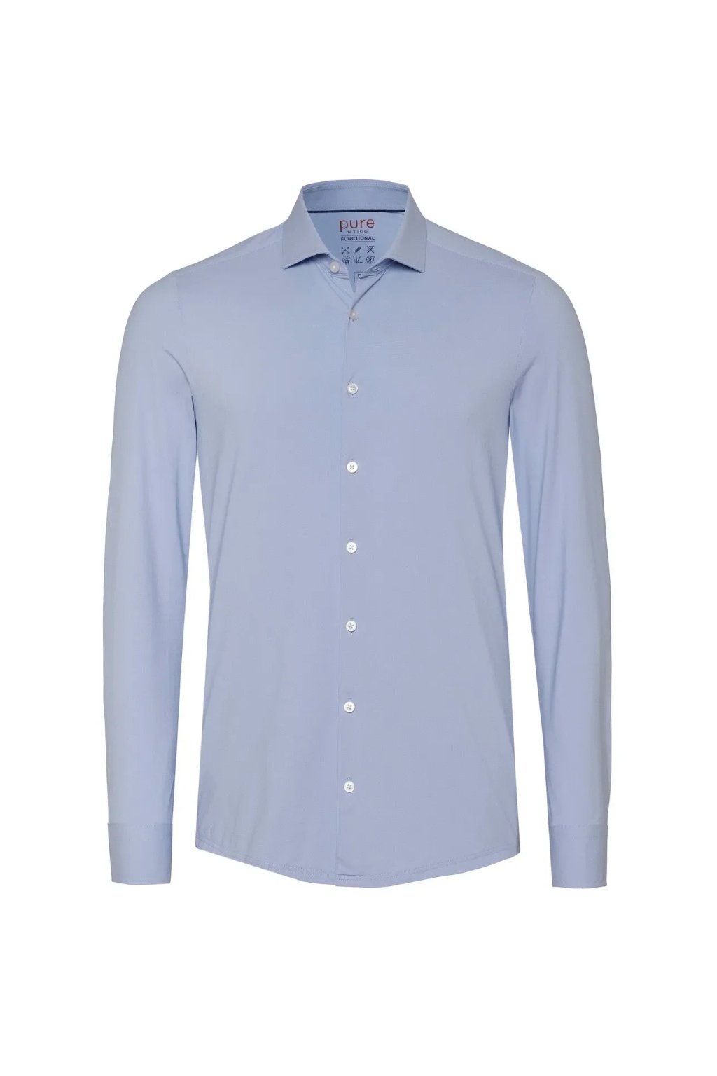Bestseller značky Pure je FUNKČNÍ košile. Funkční košile je top košile! Propojuje klasickou košili s výhodami funkčního (sportovního) oblečení – top z hlediska vzhledu, pohodlí při nošení a snadné péče. Čistý FUNKČNÍ materiál má kořeny v profesionálním sportovním oblečení a pochází přímo z Itálie. Prémiové high-tech tkaniny zajišťují 100% pohodlí, jsou rychleschnoucí, nežehlivé, prodyšné a extrémně pružné. Textury inspirují měkkým úchopem a lehkým pohodlím při nošení. Je to revoluce: Ať už v práci nebo ve volném čase!