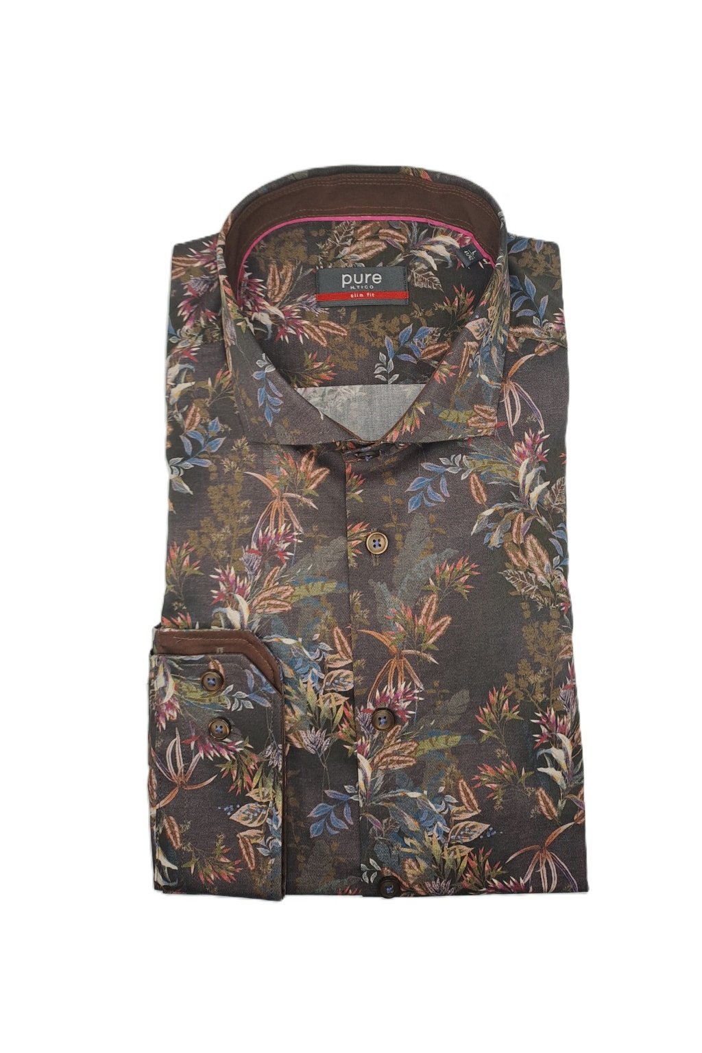 Dodejte svému outfitu šmrnc s touto pánskou bavlněnou košilí Pure ve střihu Slim Fit, která je navržena pro muže, kteří chtějí vyniknout a zároveň dbají na moderní styl. Tato košile vás okamžitě upoutá svou hnědou barvou s podzimně laděnými květinovými vzory, které perfektně doplňují sezónní atmosféru a dodávají vašemu vzhledu svěžest a originalitu.