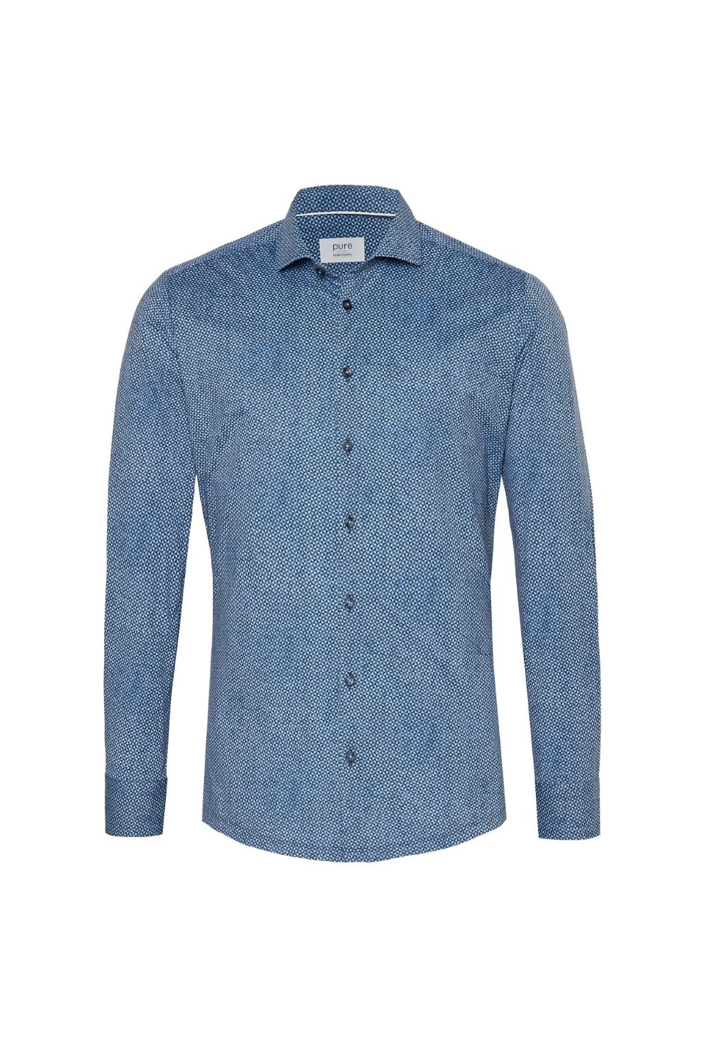 Bestseller značky Pure je FUNKČNÍ košile. Funkční košile je top košile! Propojuje klasickou košili s výhodami funkčního (sportovního) oblečení – top z hlediska vzhledu, pohodlí při nošení a snadné péče. Čistý FUNKČNÍ materiál má kořeny v profesionálním sportovním oblečení a pochází přímo z Itálie. Prémiové high-tech tkaniny zajišťují 100% pohodlí, jsou rychleschnoucí, nežehlivé, prodyšné a extrémně pružné. Textury inspirují měkkým úchopem a lehkým pohodlím při nošení. Je to revoluce: Ať už v práci nebo ve volném čase!
