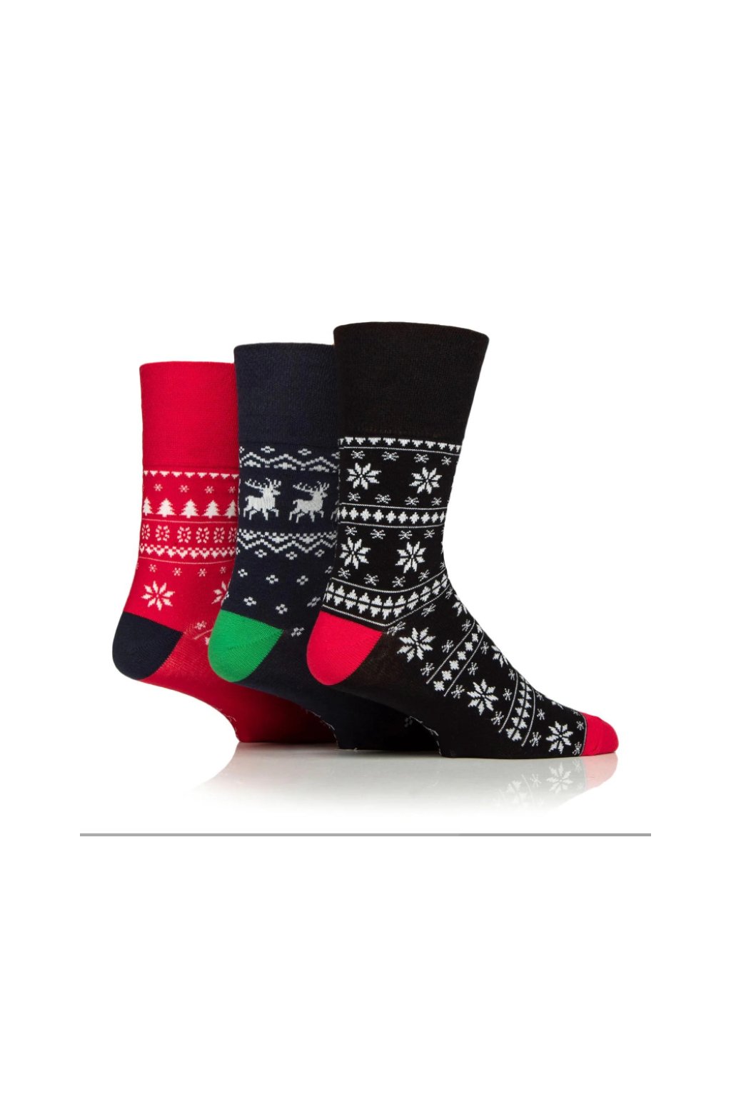 Pánské vánoční ponožky Gentle Grip s jemným nesvíravým lemem a vánočními motivy. Tři vzory v balení. Komfortní a šetrné k nohám, bez otlaků.