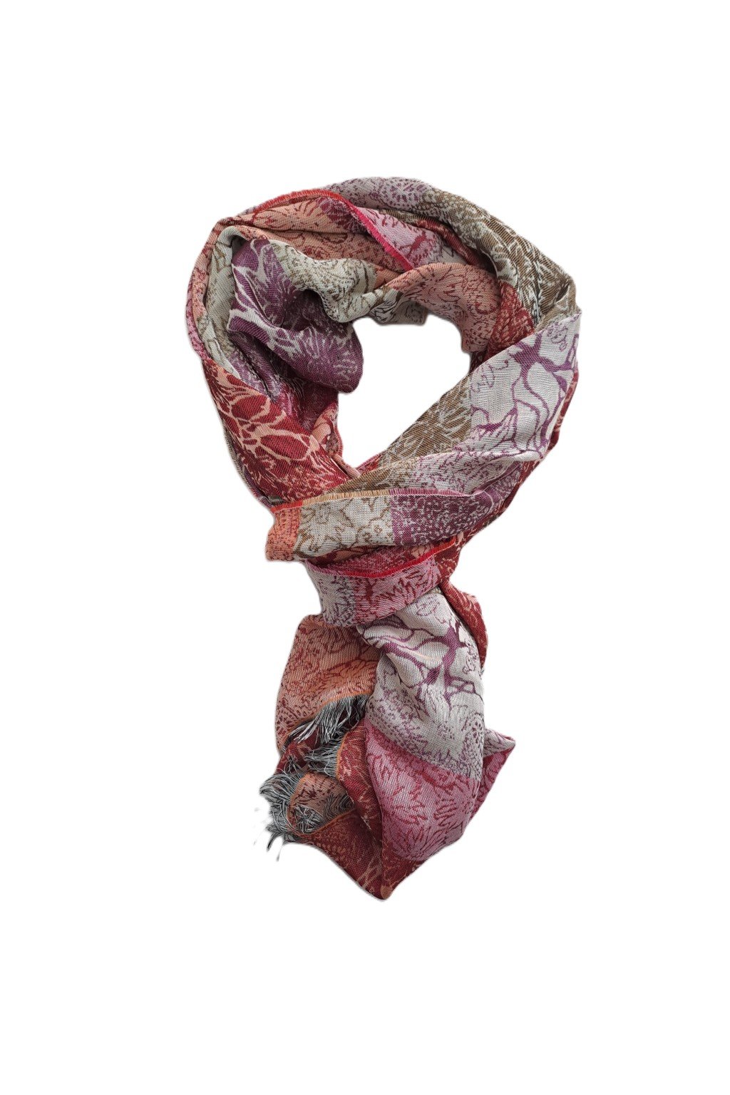 Luxusní italská dámská šála v jemném prolínání vímové, růžové a fialové. Směs modalu, ramie, bavlny a lnu vytváří lehký, elegantní a na dotek výjimečně příjemný doplněk.