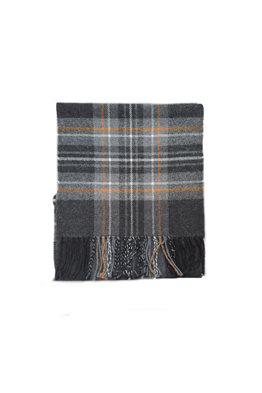 Klasická italská šála ze 100% vlny v elegantním kostkovaném vzoru. Kombinace černé, šedé a medové barvy skvěle ladí ke kabátu i saku.